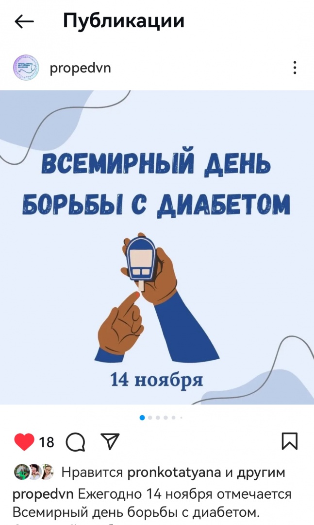 Студентки 7 группы 3 курса ЛФ Замараева Анастасия и Сорокина Татьяна подготовили презентацию для инстаграм - аккаунта кафедры, осветив в ней основные факторы риска и основные симптомы сахарного диабета.
