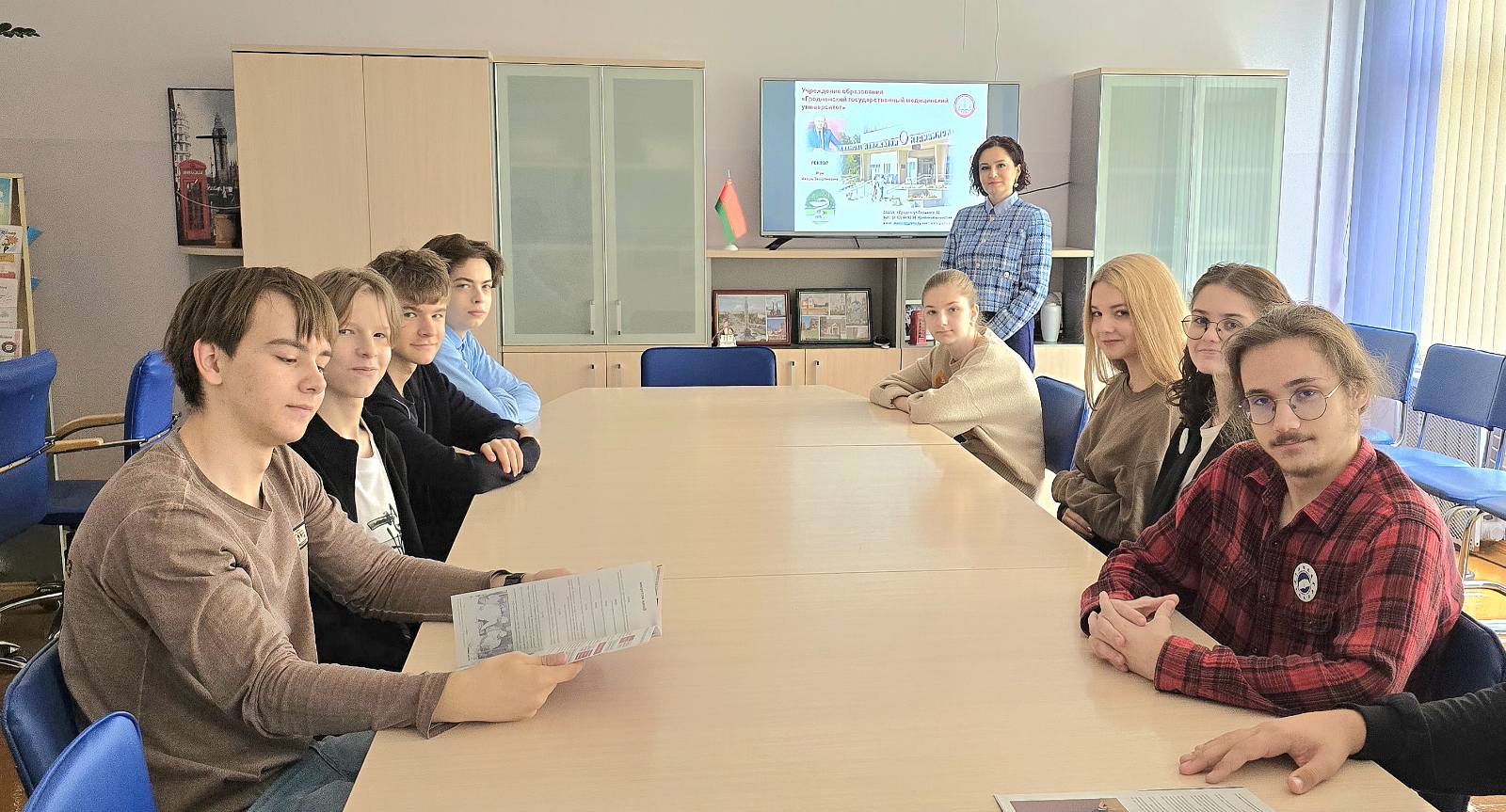 Для учащихся 10-х классов ГУО «Гимназии №2 И.В. Болдина» 18 октября состоялась профориентационная встреча с доцентом кафедры психиатрии и наркологии, к.м.н., доцентом Бизюкевич Светланой Викторовной.