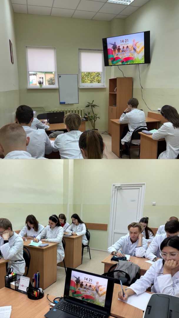 16 сентября заведующий кафедрой Станько Эдуард Павлович провел информационный час: «В единстве – сила и процветание страны!», для студентов 7 группы 5 курса лечебного факультета.