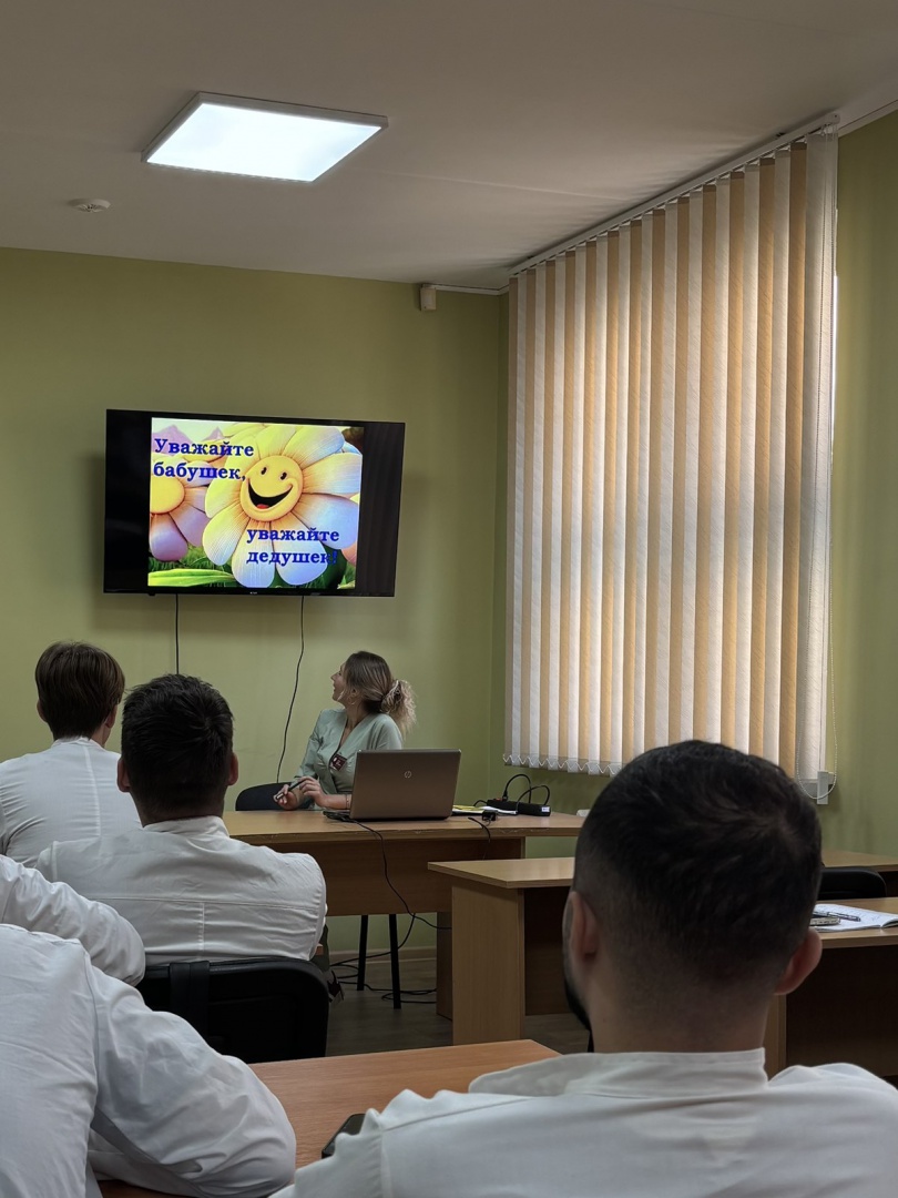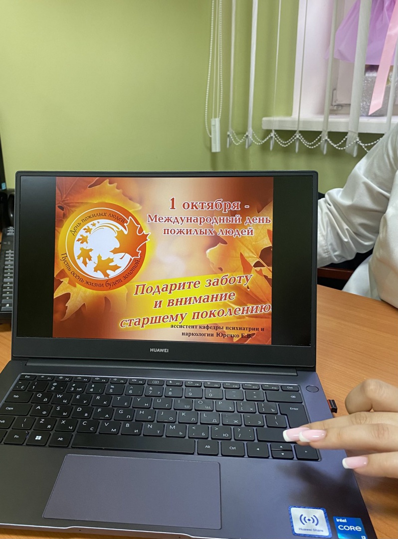 Международный День пожилых людей дает прекрасную возможность выразить глубокое уважение и сказать теплые слова благодарности всем пожилым людям за их добросовестный труд, за их огромный жизненный опыт, доброту и мудрость. В рамках Международного дня пожилых людей ППС кафедры провели информационный час среди студентов 5-6 курсов. Задачами информационного часа были: