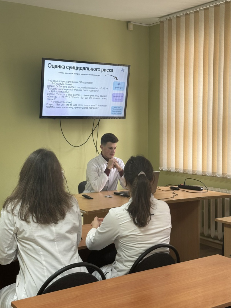 Совместно с ассистентом кафедры Марковцова О.А. в рамках программы по профилактике суицидов среди студентов медико-психологического факультета были проведены несколько мероприятий, направленных на повышение осведомленности и поддержку психического здоровья.