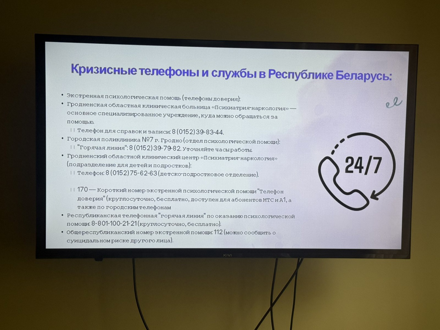 В ходе информационного часа были затронуты актуальные вопросы сохранения психического здоровья, понятия суицидального кризиса, тревожных состояний и депрессии, а также даны рекомендации по обращению за профессиональной помощью.