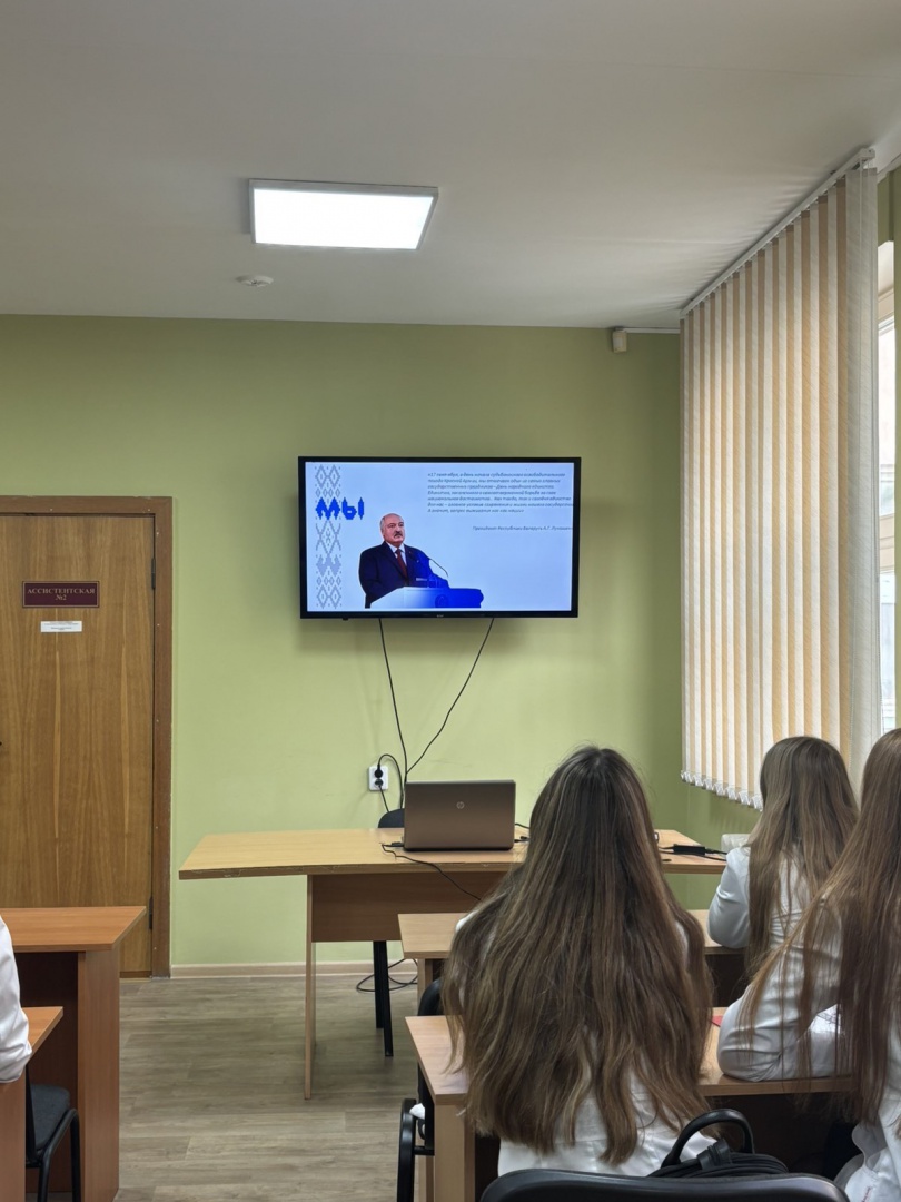17 сентября профессорско-преподавательским составом для студентов 5-6 курсов был проведен информационный час «Единство белорусского народа – основа независимой страны». В рамках информационного часа обсуждалось, что День народного единства – в истории суверенной Беларуси самый молодой праздник. В нем заложено многое – и глубокий исторический смысл, и связь поколений. И особенно было подчеркнуто, что мы должны сохранять историческую память о событиях минувшего, следовать духовным и нравственным ценностям общества, беречь и преумножать достояния Беларуси для благополучия следующих поколений.