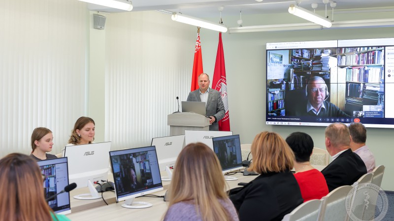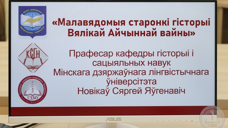 У рамках праграмы сеткавага ўзаемадзеяння па ініцыятыве кафедры сацыяльна-гуманітарных навук 23 кастрычніка прайшла адкрытая анлайн-лекцыя прафесара кафедры гісторыі і сацыяльных навук Мінскага дзяржаўнага лінгвістычнага ўніверсітэта Новікава Сяргея Яўгенавіча «Малавядомыя старонкі гісторыі Вялікай Айчыннай вайны» на якой прысутнічалі студэнты 1 курса, а таксама загадчык і выкладчыкі кафедры сацыяльна-гуманітарных навук.
