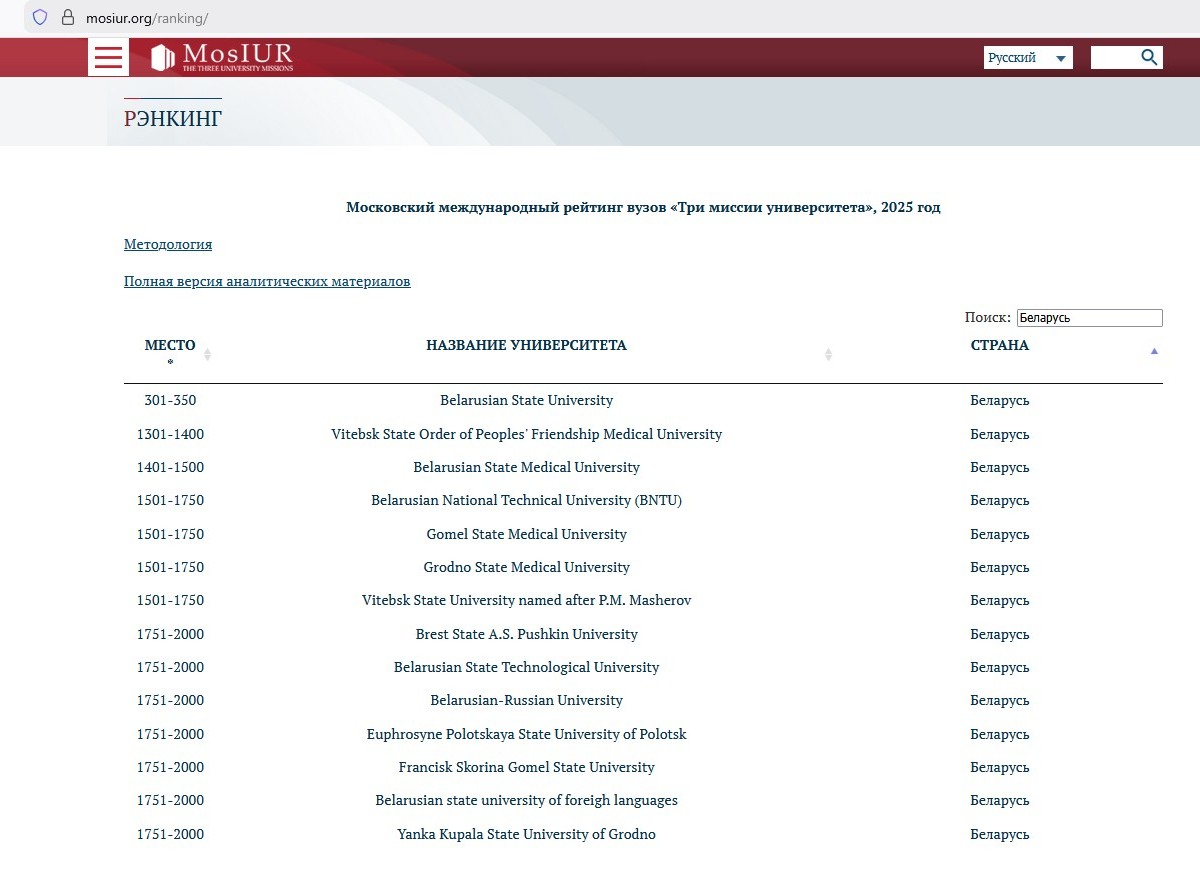 Беларусь в 2020 году представляют шесть вузов: БГУ, БГМУ, ГрГМУ, БНТУ, БГУИР, ГрГУ им. Я.Купалы.