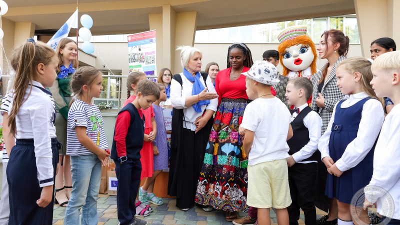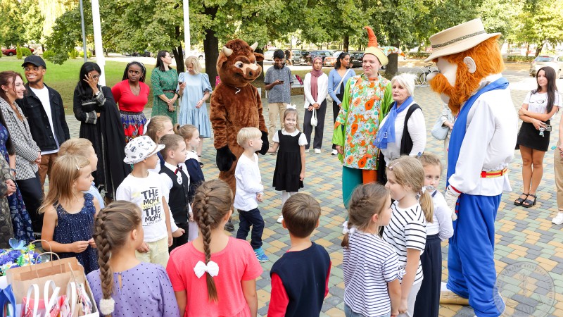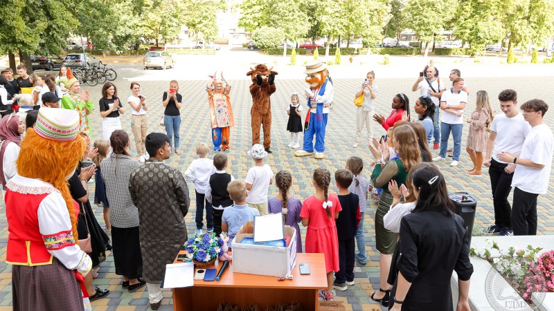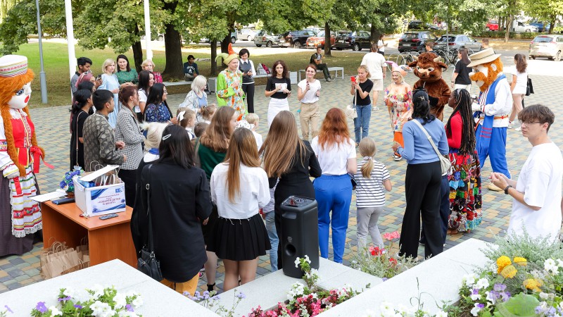 Завершающим мероприятием была небольшая развлекательная программа для детей сотрудников университета: танцы, игры с ростовыми куклами, сказочными героями и родителями. Детям вручили подарки школьникам, участникам программы.