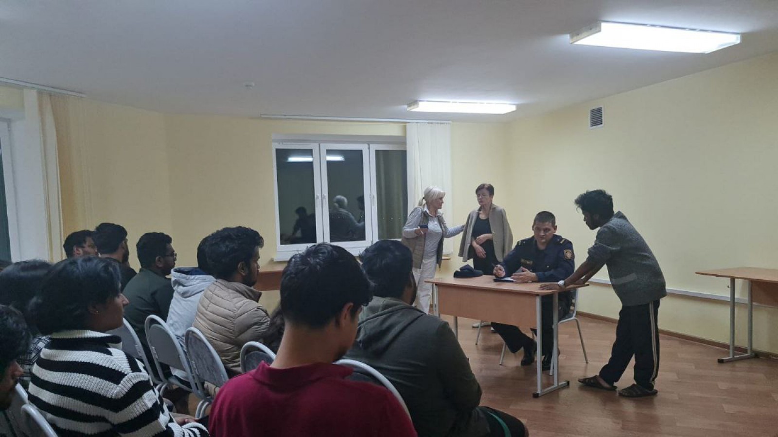 В рамках недели правовой грамотности прошла встреча иностранных студентов с участковым инспектором в общежитии № 4. Студенты задавали много вопросов, которые волновали ребят. Тема встречи: административная ответственность в Республике Беларусь.