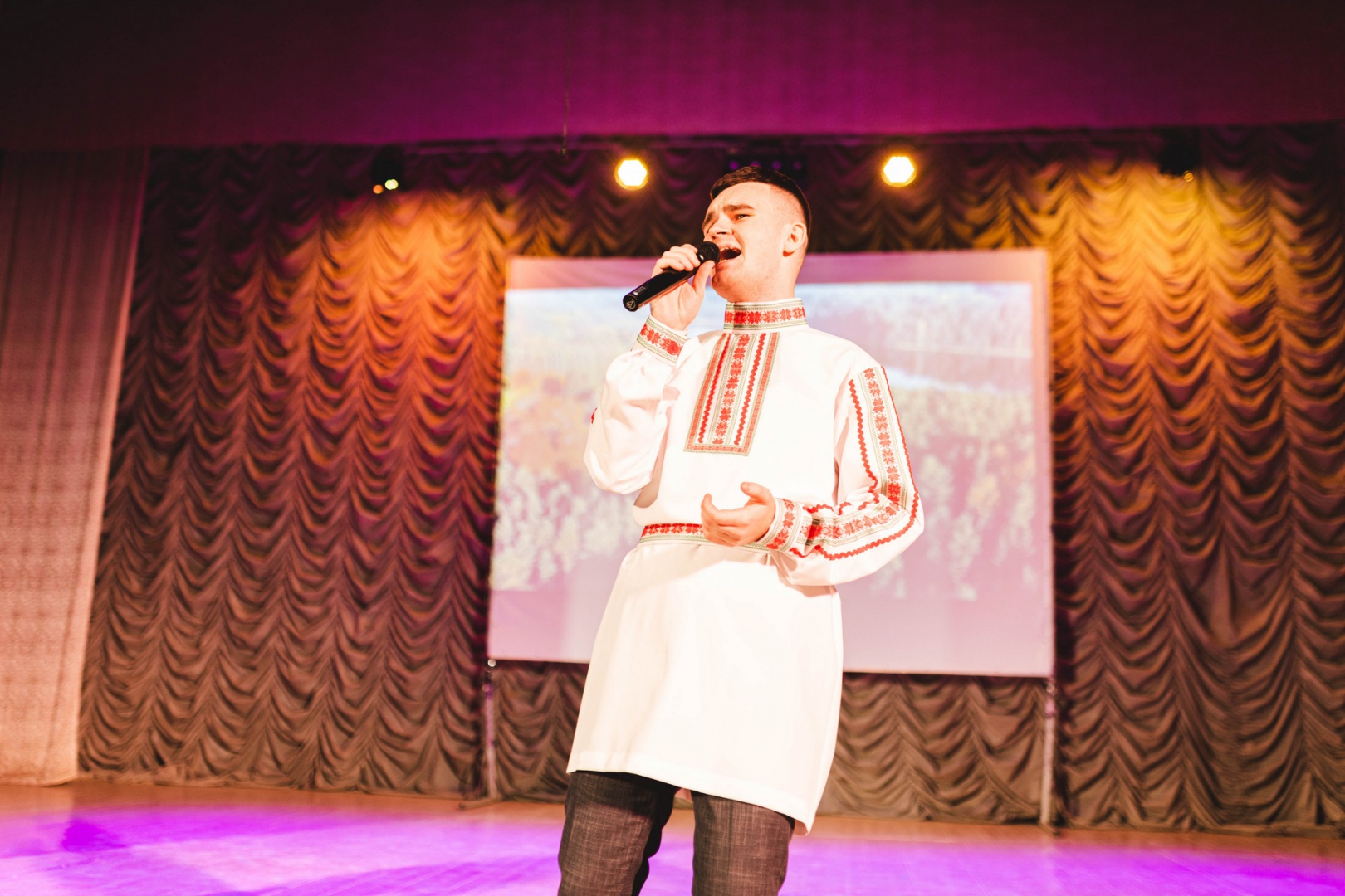 Огромная поддержка зала заряжала Руслана силами и заставляла улыбаться, длительная подготовка и репетиции допоздна помогли отточить таланты и уверенно держаться на сцене!