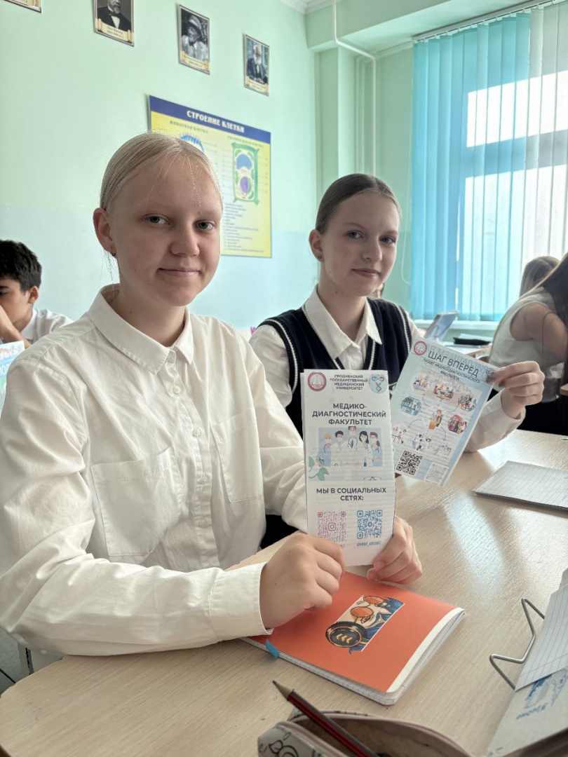 В рамках выполнения "Дорожной карты по сопровождению самоопределение и профессиональной ориентации обучающихся" на 2025 /2026 учебный год студенты медико-диагностического факультета начали реализацию проекта "Шаг вперёд". Обучающиеся школ г. Гродно познакомились с факультетом, особенностями обучения.