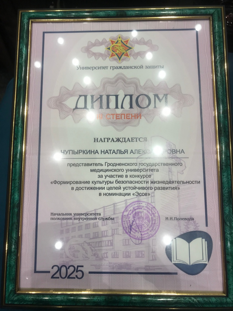 Студентка ГрГМУ – в числе победителей конкурса «Формирование культуры безопасности жизнедеятельности в достижении Целей устойчивого развития»