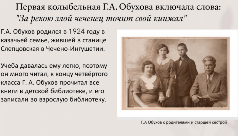 Подробнее с жизнью Г. А. Обухова можно ознакомиться в карусели.