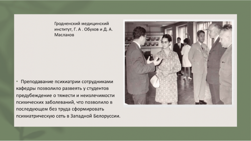 Этот выдающийся человек, первый доцент кафедры психиатрии, возглавлявший её с 1963 года по 1997 год, стал создателем и вдохновителем психиатрической службы Гродненской области.