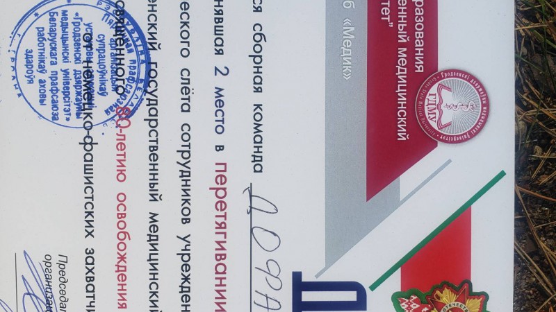 Спасибо студентам МПФ, которые не остались в стороне, а помогли команде на этапе подготовки, спасибо Козловской Н.А., Калюте Е.А., Сизовой О.В. за орг. помощь. Ну и конечно, благодарим первичную профсоюзную организацию сотрудников ГрГМУ в лице Богдановича И.П., а также кафедру физического воспитания и спорта за прекрасную организацию турслета и отличный досуг!