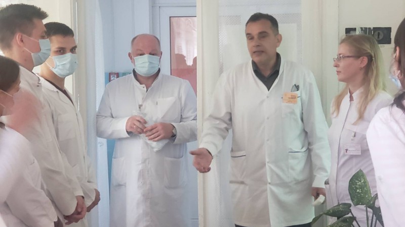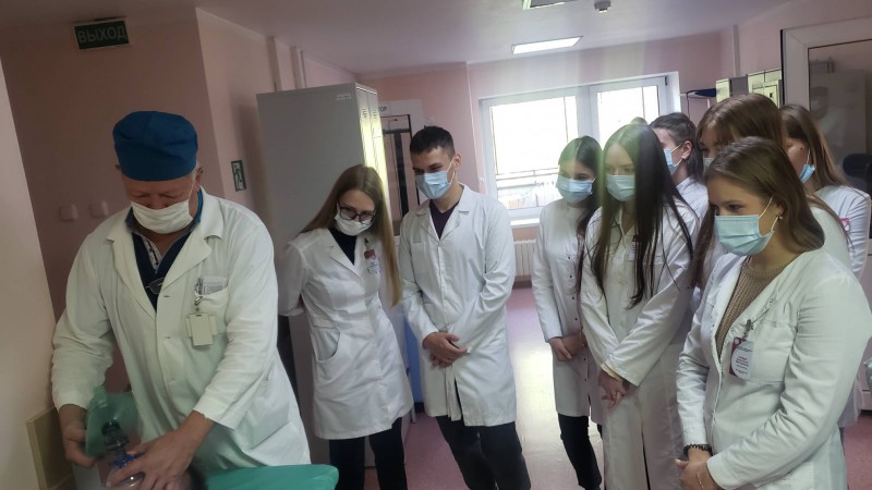 Впечатлила первая встреча с главным врачом – Жучкевичем Сергеем Чеславовичем, который сразу в приемном отделении предложил студентам отработать навык с дефибриллятором. А после были отделения, знакомство с кадрами, организацией наблюдения и лечения. В реанимации студенты вновь почти сдали экзамен по оказанию неотложной помощи.