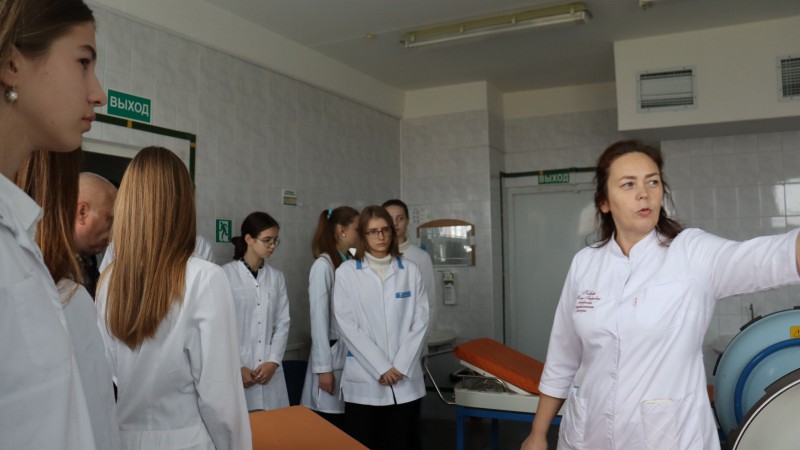 Второй день был полон увлекательных экскурсий. Школьники посетили кафедры клинической психотерапии и диагностики, психиатрии и наркологии. Они узнали, как устроены отделения в больнице, услышали реальные истории из жизни специалистов, посетили кабинеты физиотерапии и даже побывали в барокамере.