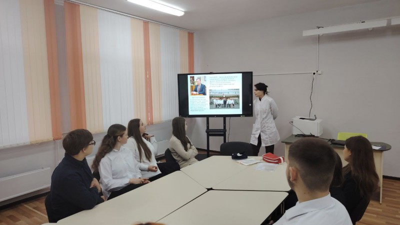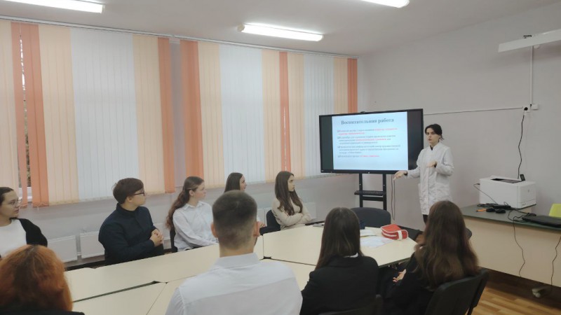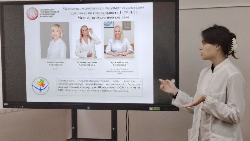 Так, студенткой 3 курса нашего факультета проведена профориентационная работа среди учащихся 10-11 классов в ГУО "Гимназия г.Ветка". Студентка рассказала об учебе в университете, о жизни нашего факультета. Встреча была проведена в игровой форме, где учащиеся гимназии смогли примерить на себя образ врача, послушать биение сердца, выписать рецепт.