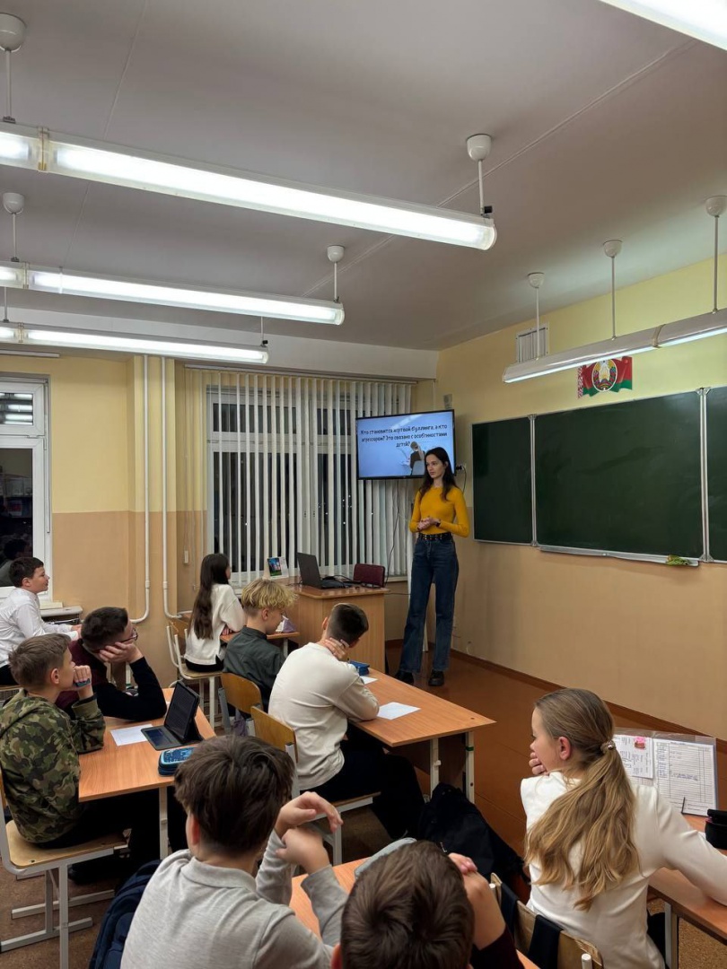1. Проблема буллинга: В СШ №37 и Гимназии №10 Ксения Чарная и Елизавета Ковунова (5 курс) провели одну из самых востребованных лекций. Они говорили о травле не как о «детской ссоре», а как о системном психологическом насилии, наносящем вред всем участникам.