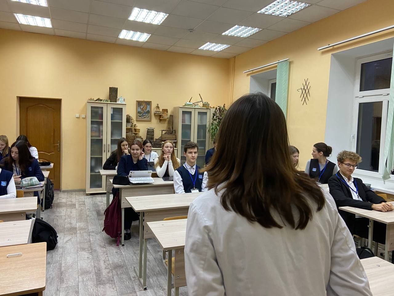 2. Суть профессии: В то же время третьекурсницы Маргарита Велесевич и Екатерина Пригаженок рассказывали старшеклассникам о том, что скрыто от глаз пациента. Их лекция об этике и деонтологии была посвящена эмпатии, ответственности и конфиденциальности — тем «мышцам» характера, без которых диплом врача остается просто бумагой.  За прошнедшую неделю студенты-медики продемонстрировали, что их образование — это не только теория, но и активная социальная позиция. Они не только оттачивают навыки публичных выступлений, но и выполняют важнейшую профилактическую работу, выступая для школьников в роли старших, компетентных наставников.