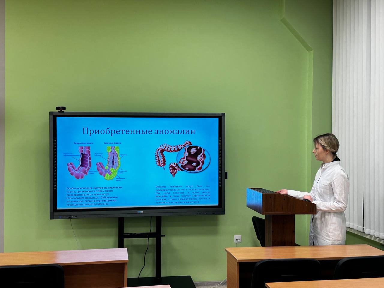 В этот же день студентки 4 курса Лелюкова Анастасия и Щёлок Ульяна, а также студентка 5 курса Быковская Софья провели занятие о работе иммунной системы и роли вакцинации. Школьники разобрали, как организм формирует защиту от инфекций и почему прививки сравнивают с «тренировкой иммунитета» — регулярной, необходимой и работающей на опережение.