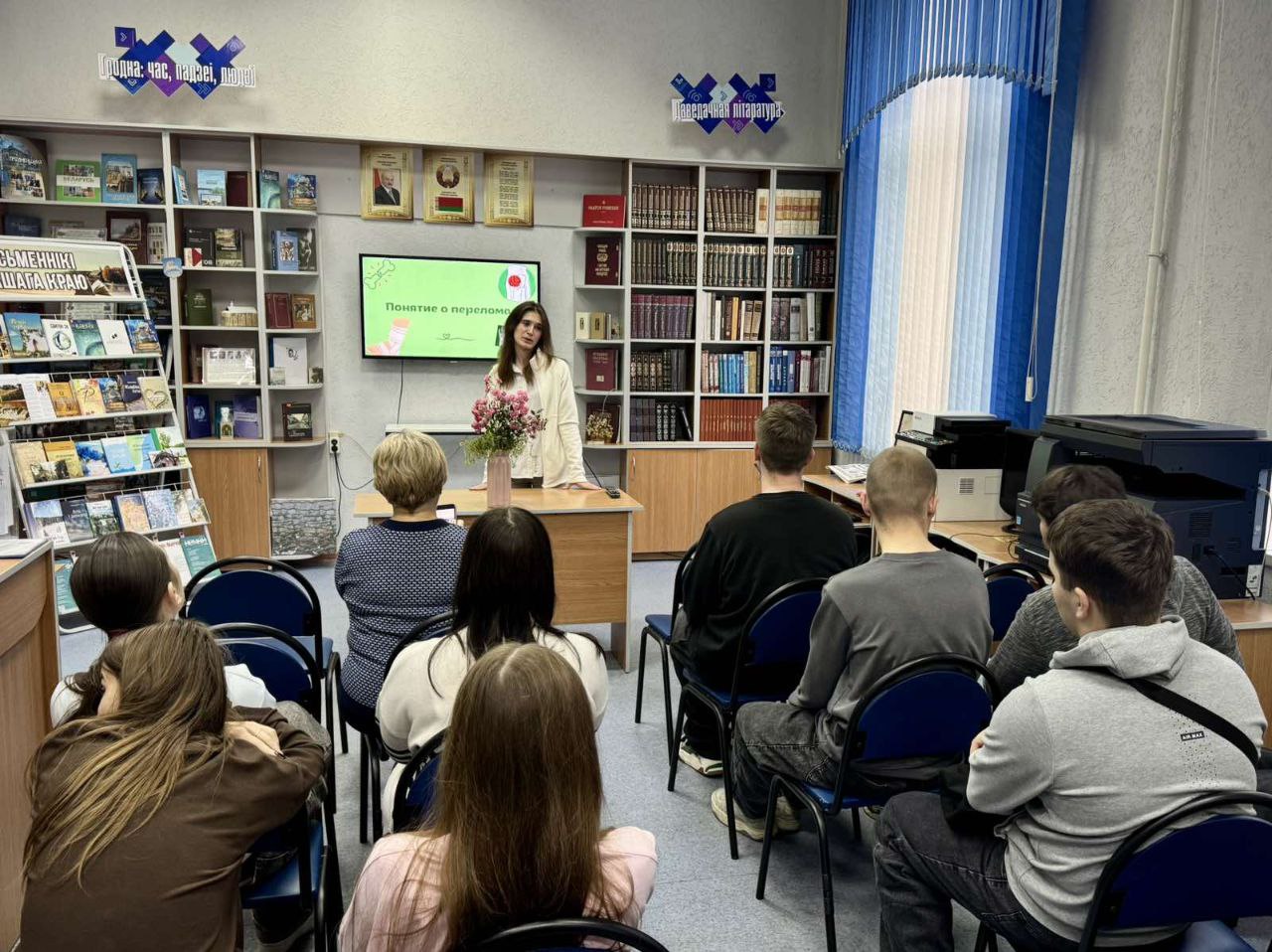 Понятие о переломах (23.10): Студентка Быковская Софья (5 курс) провела лекцию о видах переломов, их признаках и категорическом запрете самостоятельного вправления в Гродненской городской центральной библиотеке. Это четкая и прикладная информация для немедицинской аудитории.
