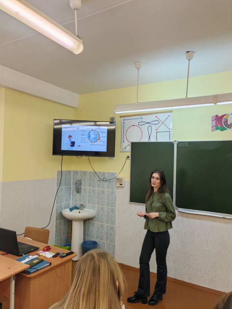 В рамках проекта "Здоровый разговор" студентка посетила ГУО "Средняя школа №37 г.Гродно" с лекцией на тему "Орган зрения. Коротко о главном".