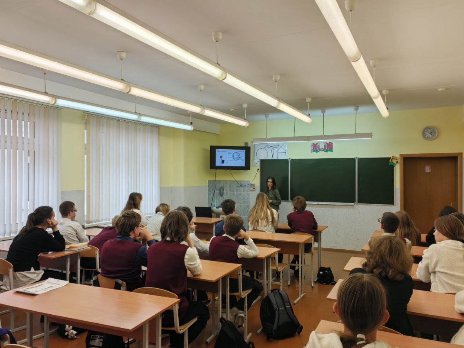 Студентка объяснила, как устроен глаз человека, как он преобразует свет в зрительные образы и по каким причинам снижается острота зрения. Ответила на все вопросы, интересующие учащихся, и провела совместно с ребятами гимнастику для глаз.