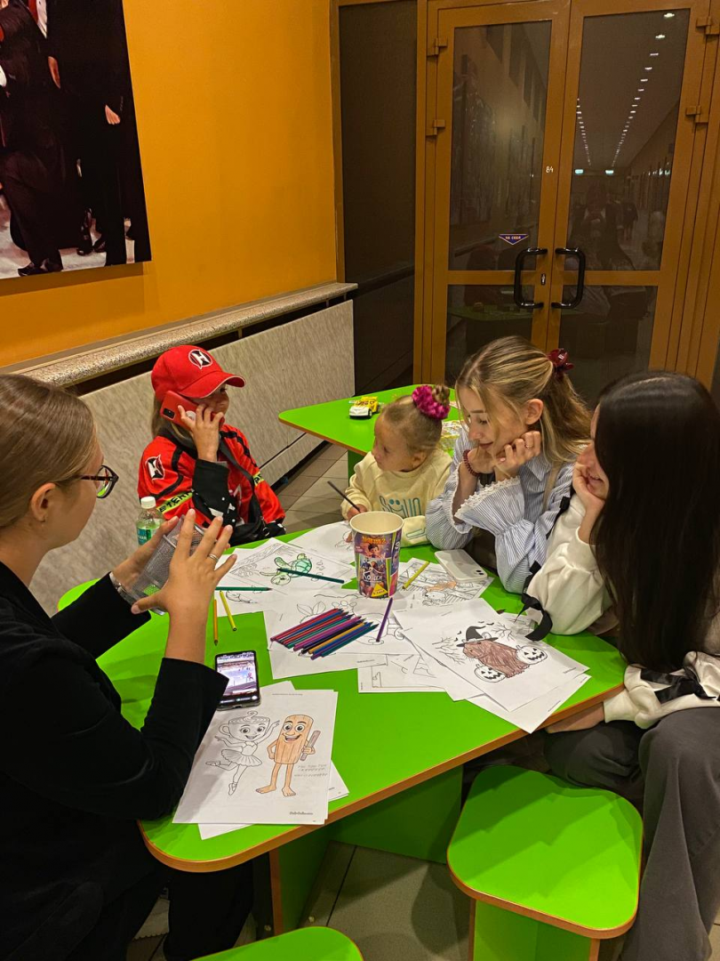 • Волонтеры встречают детей, помогают им выбрать занятие, организуют мини-группы для игр, следят за порядком.
