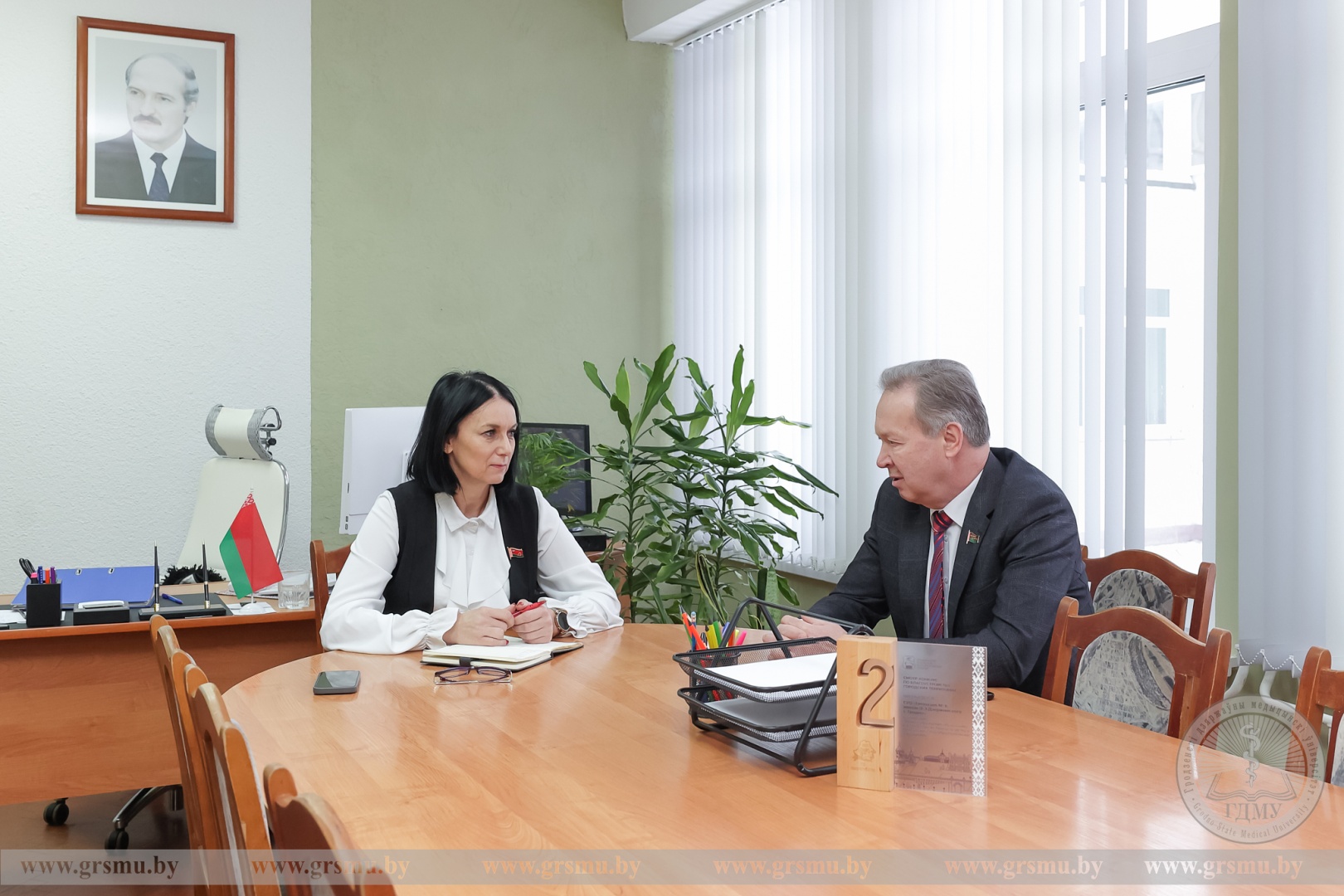 В ходе встречи Игорь Георгиевич подробно рассказал о текущей деятельности университета, подчеркнув его активную роль в реализации национальных приоритетов в сфере здравоохранения и образования. Он отметил, что вуз ведет масштабные научные исследования, постоянно совершенствует образовательные программы, учитывая требования цифровой эпохи и актуальные запросы практического здравоохранения, успешно презентует себя на международных конкурсах и олимпиадах. Особое внимание в университете уделяется подготовке высококвалифицированных медицинских кадров, где студенты с первого курса получают практико-ориентированное обучение, совершенствуют навыки на симуляционном оборудовании.