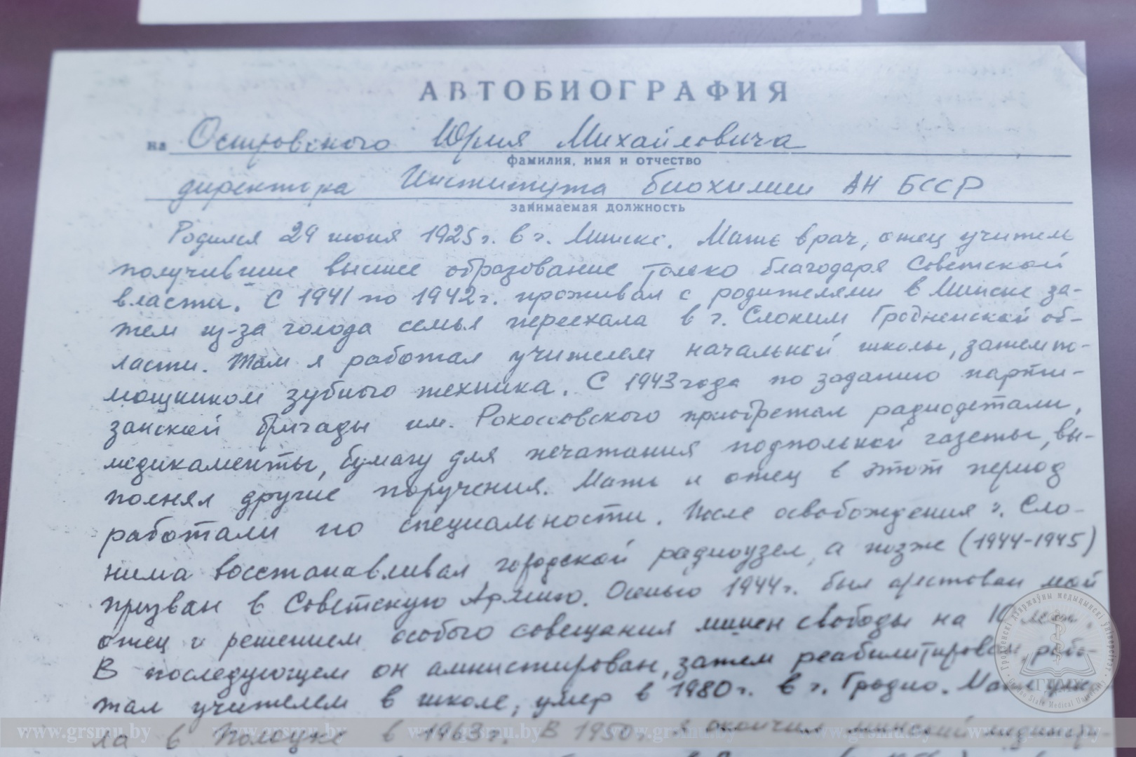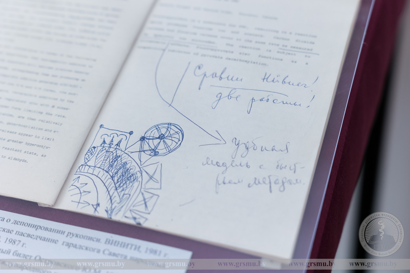 – Благодаря подлинным рукописям, монографиям, диссертациям выдающегося ученого и его учеников, мы можем увидеть становления Гродненской биохимической школы и ее связей с ведущими научными центрами СССР, – отмечает Яна Витальевна. – Аутентичная обстановка кабинета позволяет буквально ощутить, в каких условиях рождались идеи по токсикологии алкоголизма и созданию лекарственных препаратов, а подлинные приборы и документы превращаются в наглядное пособие для студентов, раскрывая эволюцию научного метода.