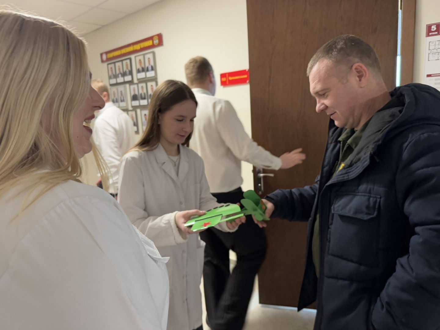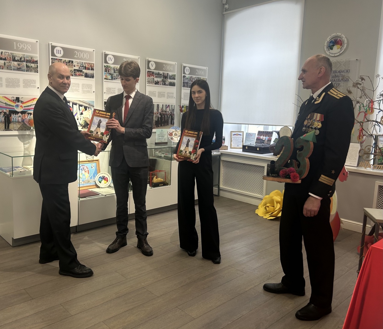 Студенческая почта доставила праздничные поздравления на военную кафедру Гродненского государственного медицинского университета, поприветствовала членов Гродненского городского совета ветеранов, побывала на праздничном построении и выступила с приветствием от Гродненского государственного медицинского университета на военном факультете ГрГУ им. Я. Купалы.
