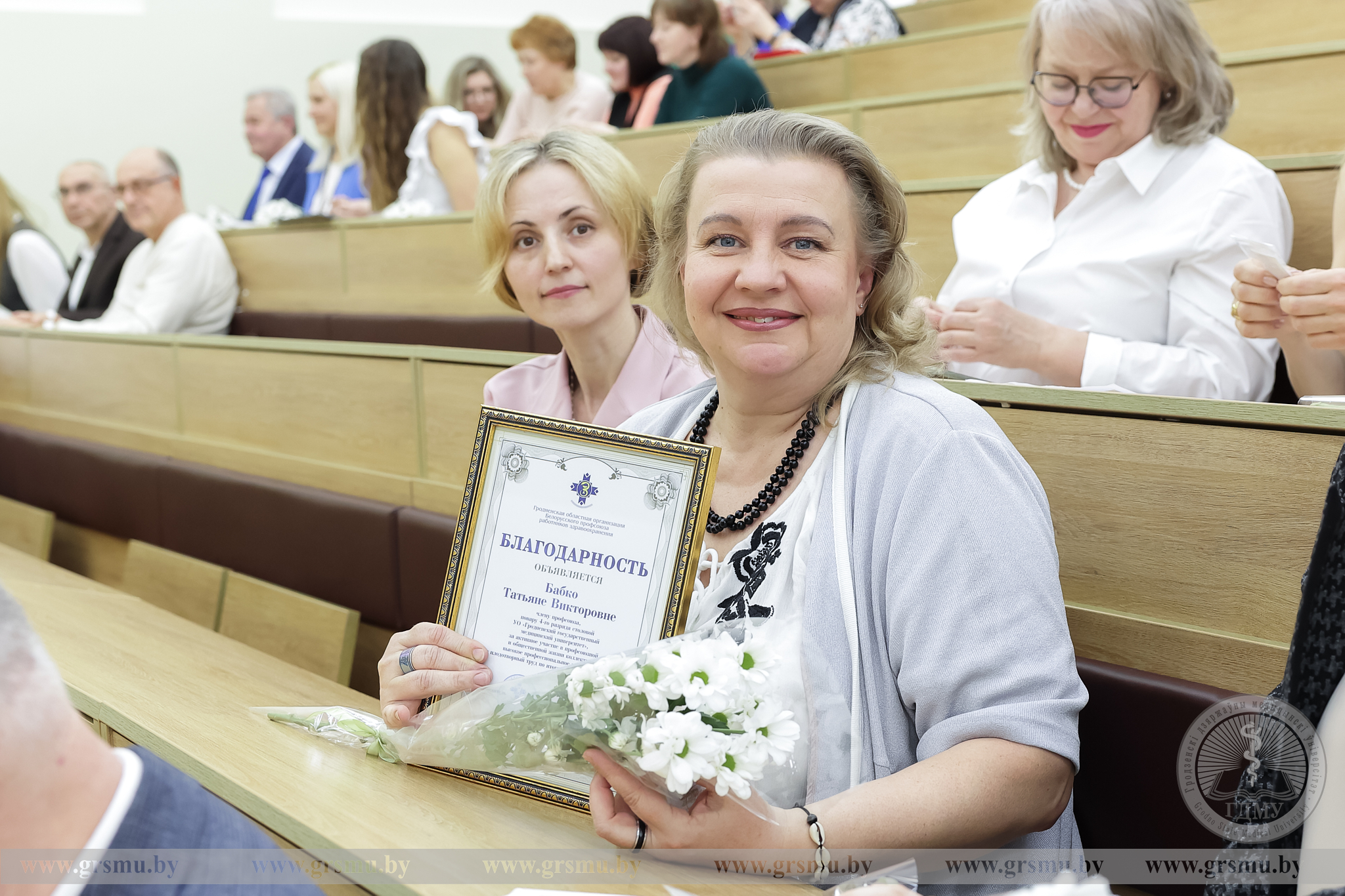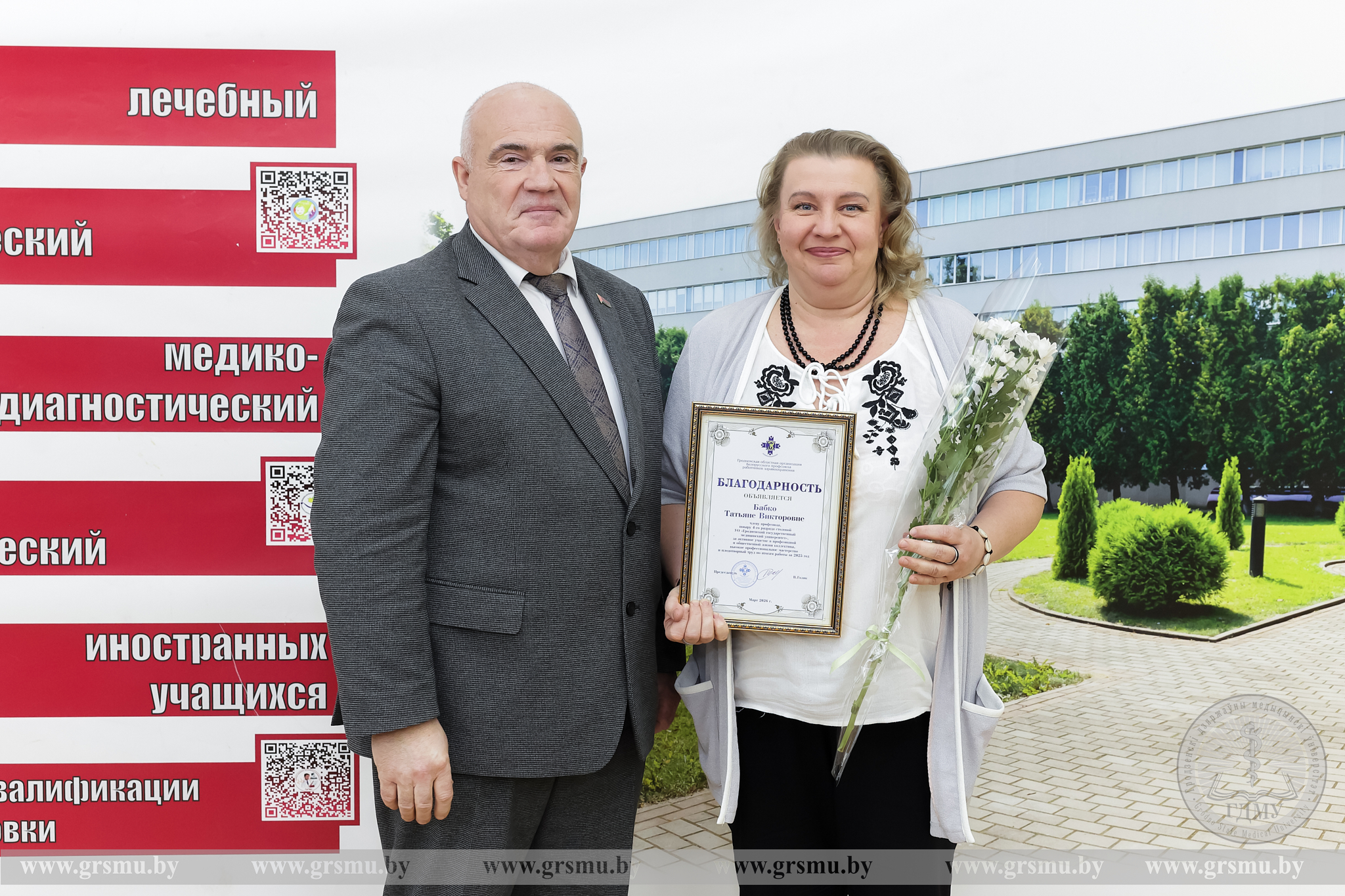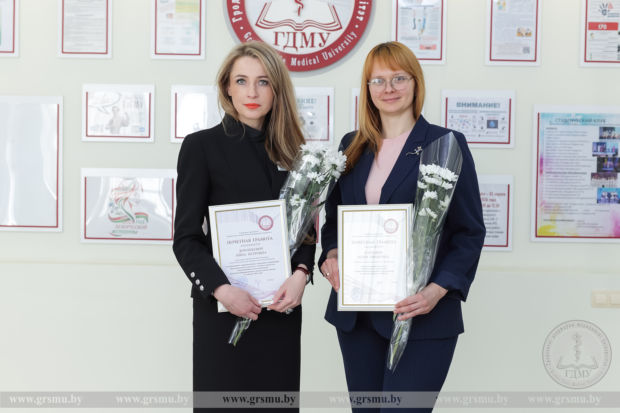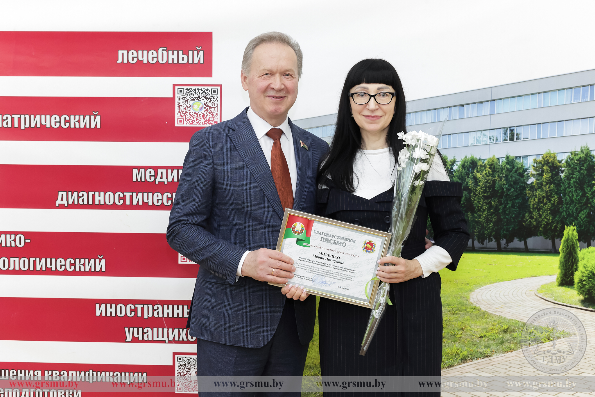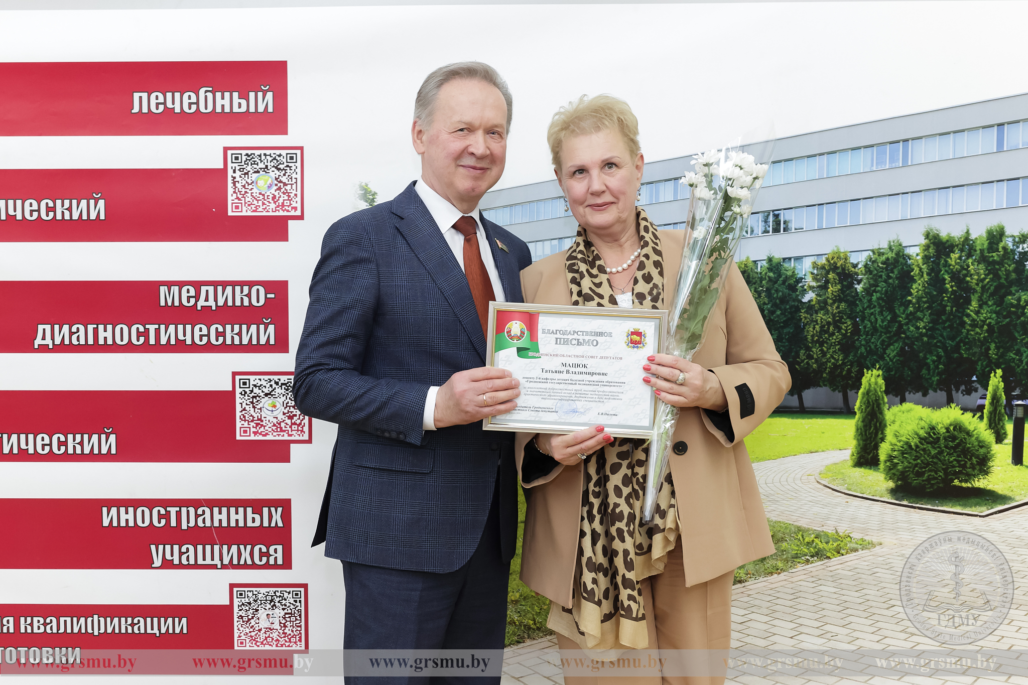 Благодарственным письмом Гродненского областного Совета депутатов отмечены доцент 2-й кафедры детских болезней Татьяна Владимировна Мацюк и доцент кафедры общей хирургии Мария Иосифовна Милешко.