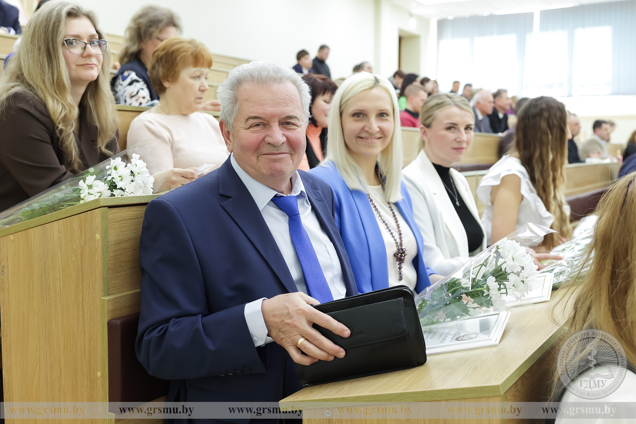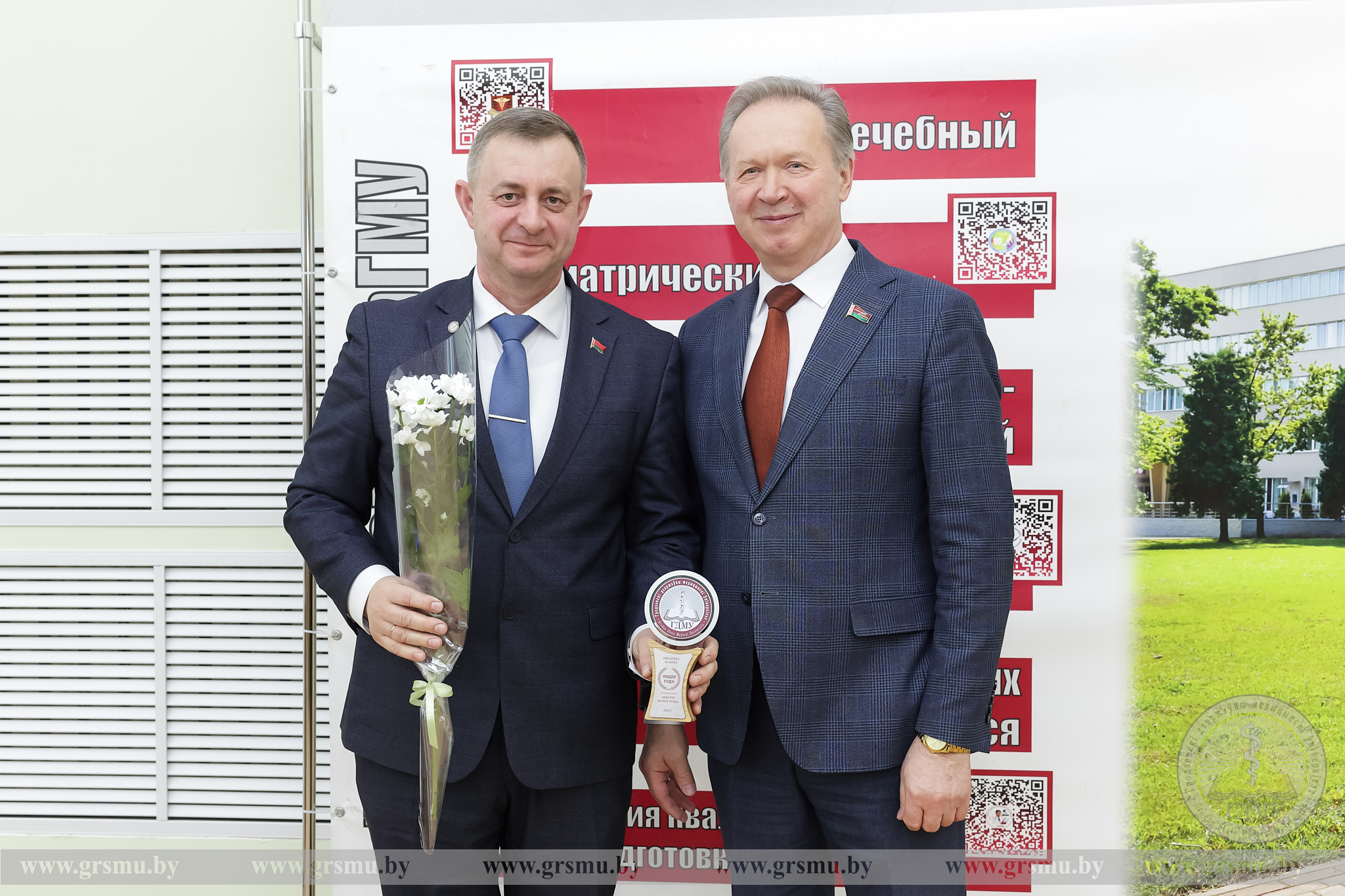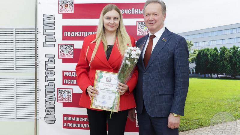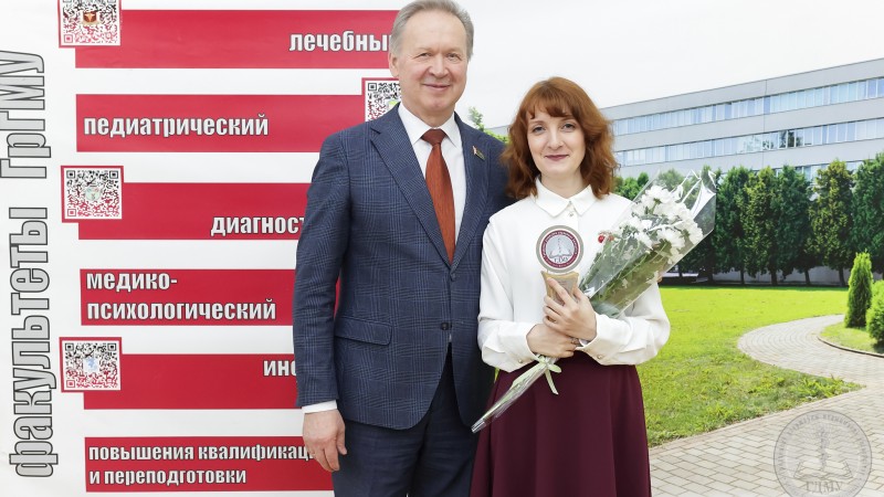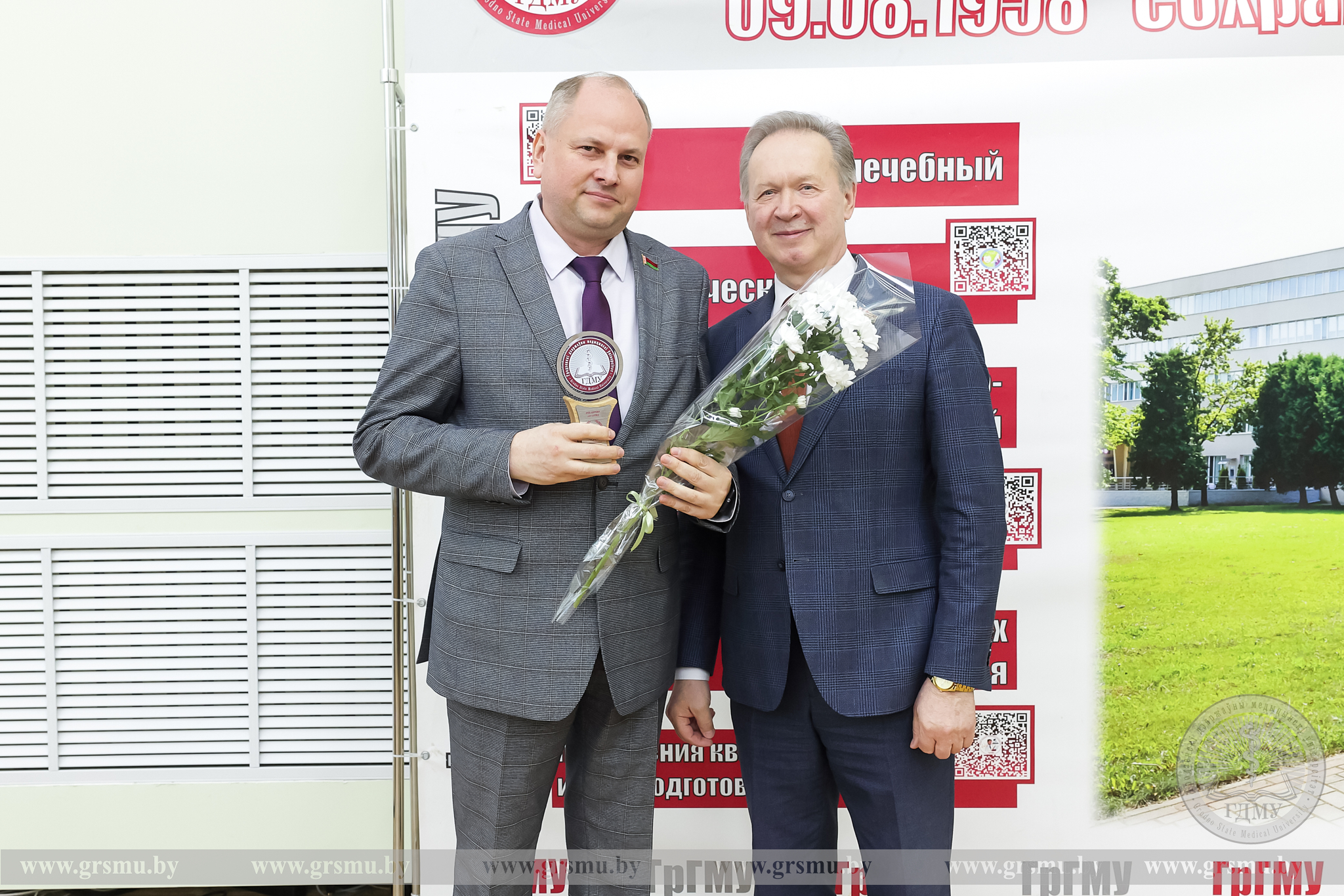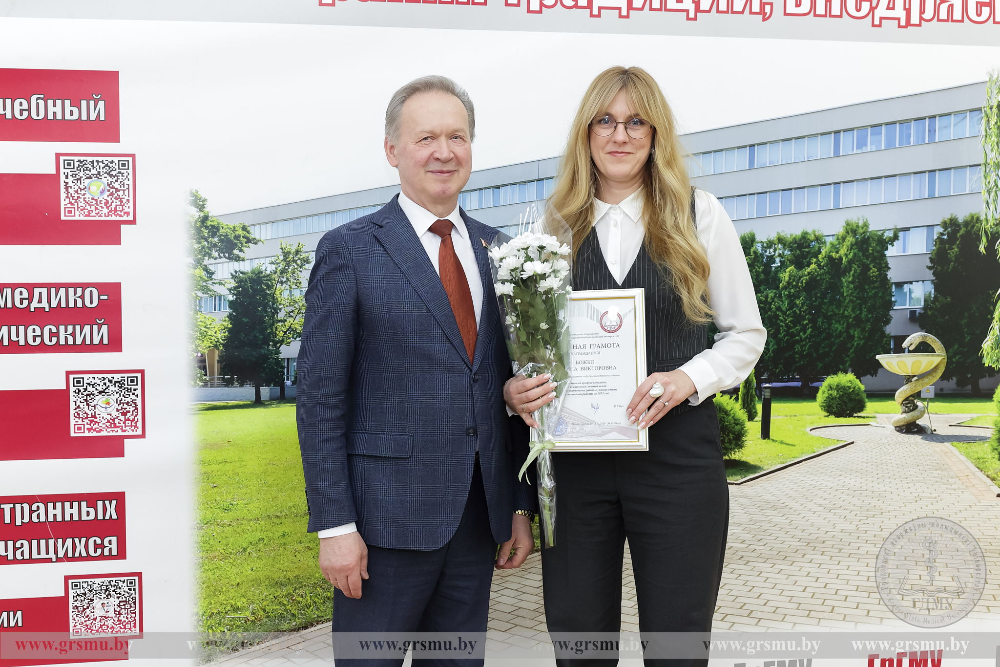 За плодотворное сотрудничество, содействие в интеграции образовательного, научного и лечебного процессов, взаимодействие в деле подготовки высококвалифицированных специалистов-медиков Почетной грамотой учреждения образования «Гродненский государственный медицинский университет» награждены главный врач учреждения здравоохранения «Гродненский областной эндокринологический диспансер» Инна Петровна Дорошкевич, заместитель главного врача по медицинской части учреждения здравоохранения «Городская клиническая больница №4 г. Гродно» Сергей Владимирович Колешко, врач лучевой диагностики учреждения здравоохранения «Гродненская университетская клиника» Андрей Валерьевич Прокопович, врач-рентгенэндоваскулярный хирург ангиографического кабинета учреждения здравоохранения «Гродненская университетская клиника» Сергей Петрович Антоненко.