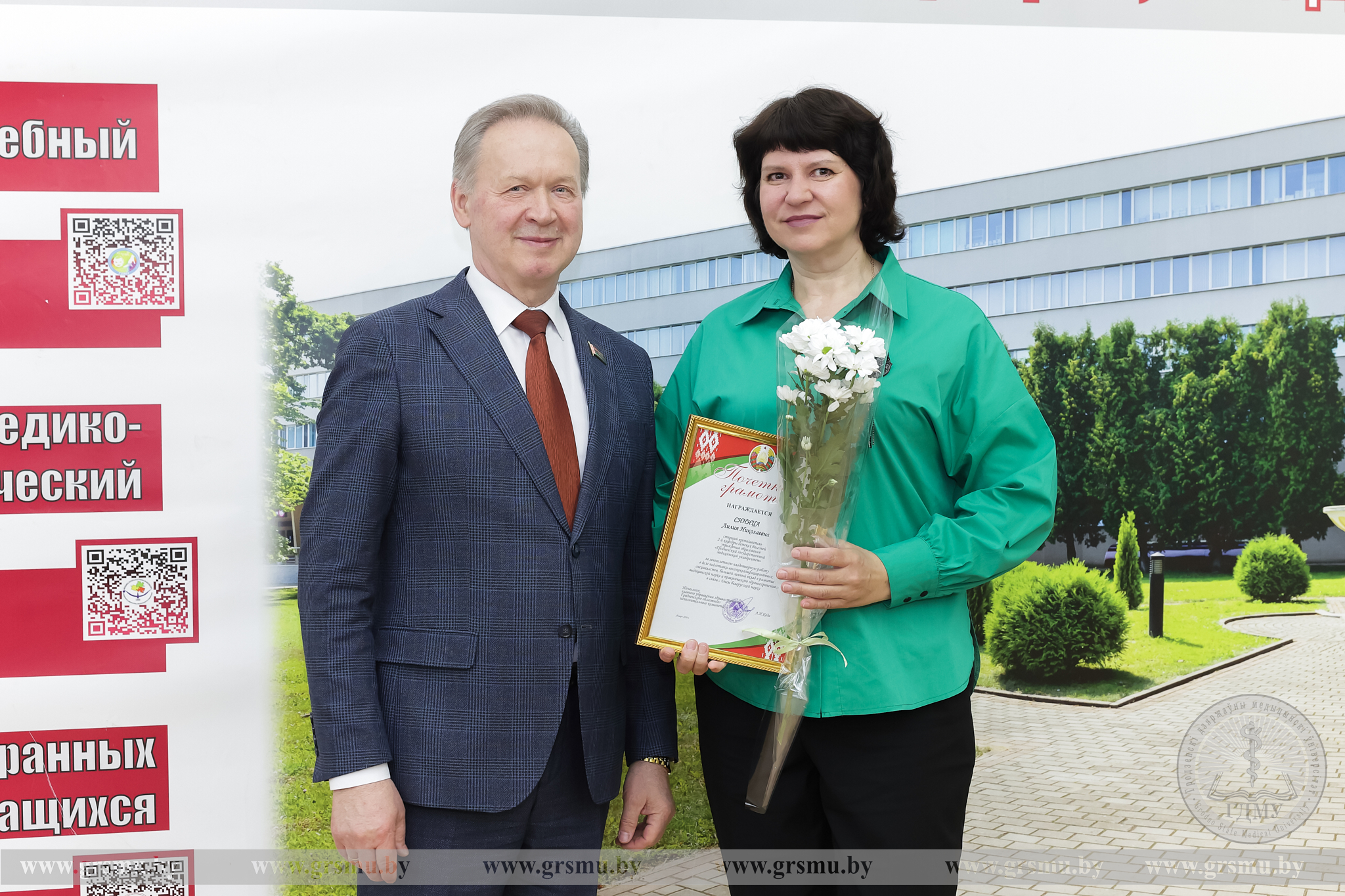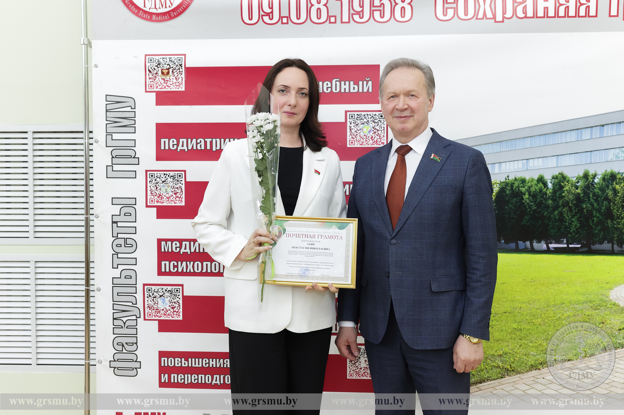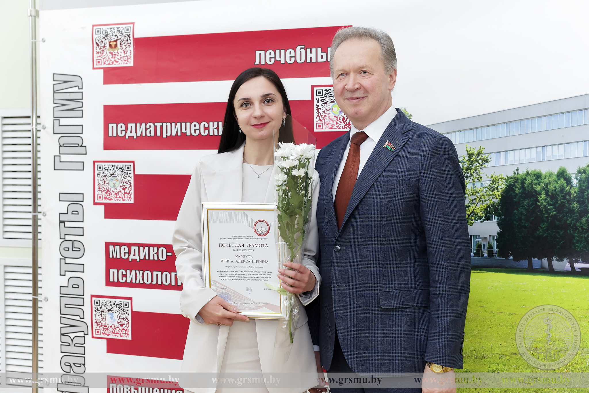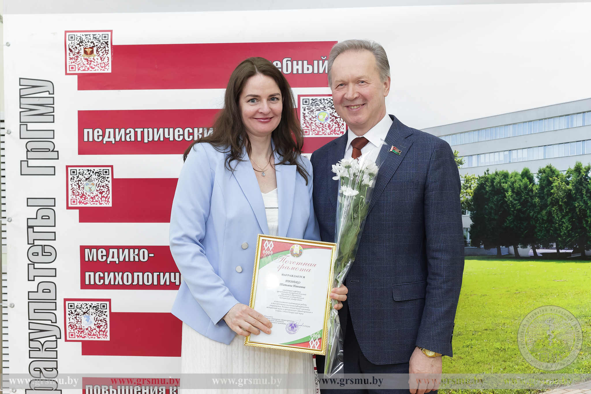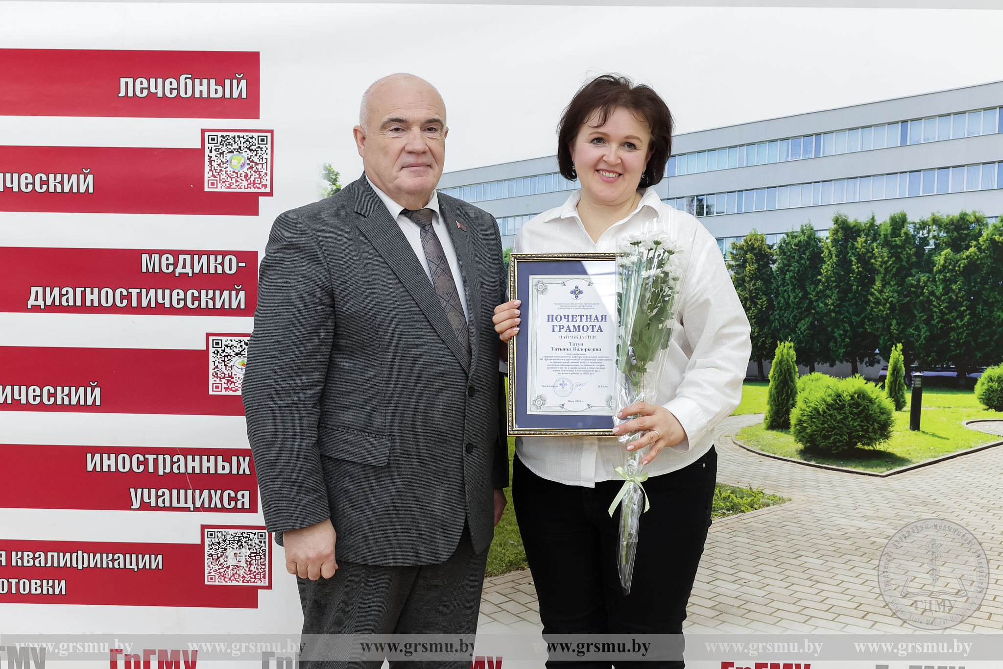 Почетной грамоты главного управления здравоохранения Гродненского областного исполнительного комитета удостоены старший преподаватель 2-й кафедры детских болезней Лилия Николаевна Синица и заведующий кафедрой пропедевтики внутренних болезней Татьяна Павловна Пронько.