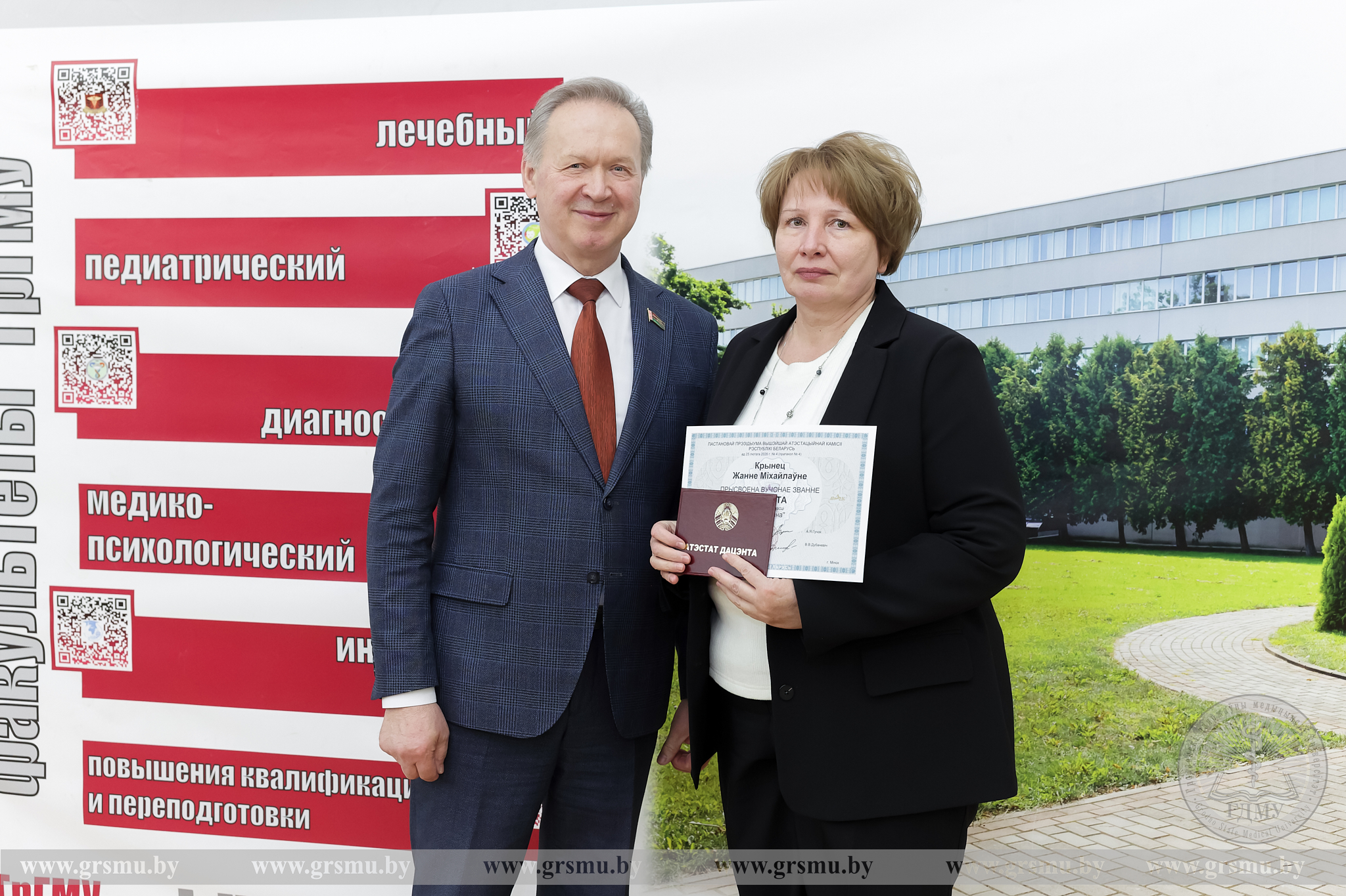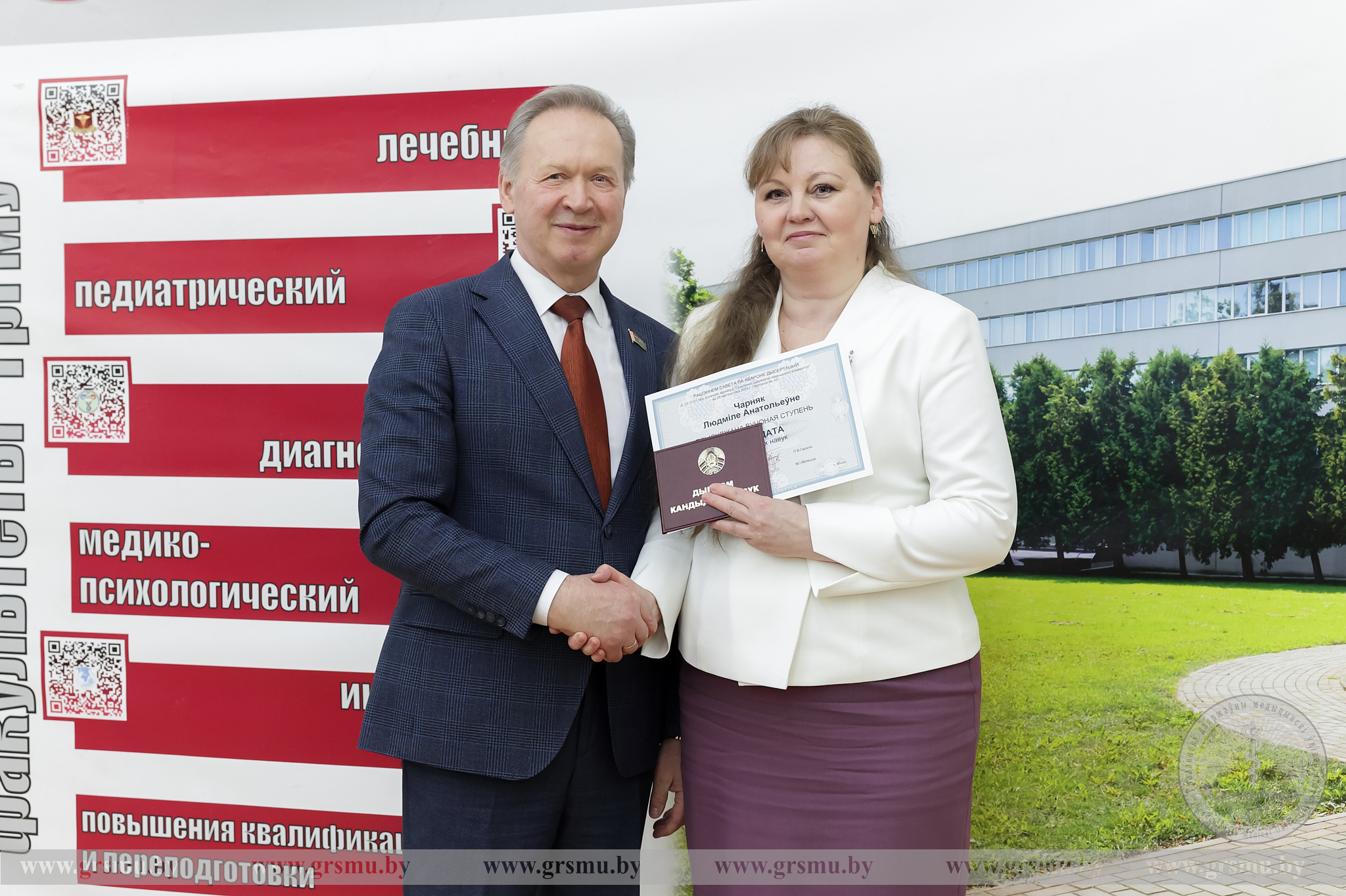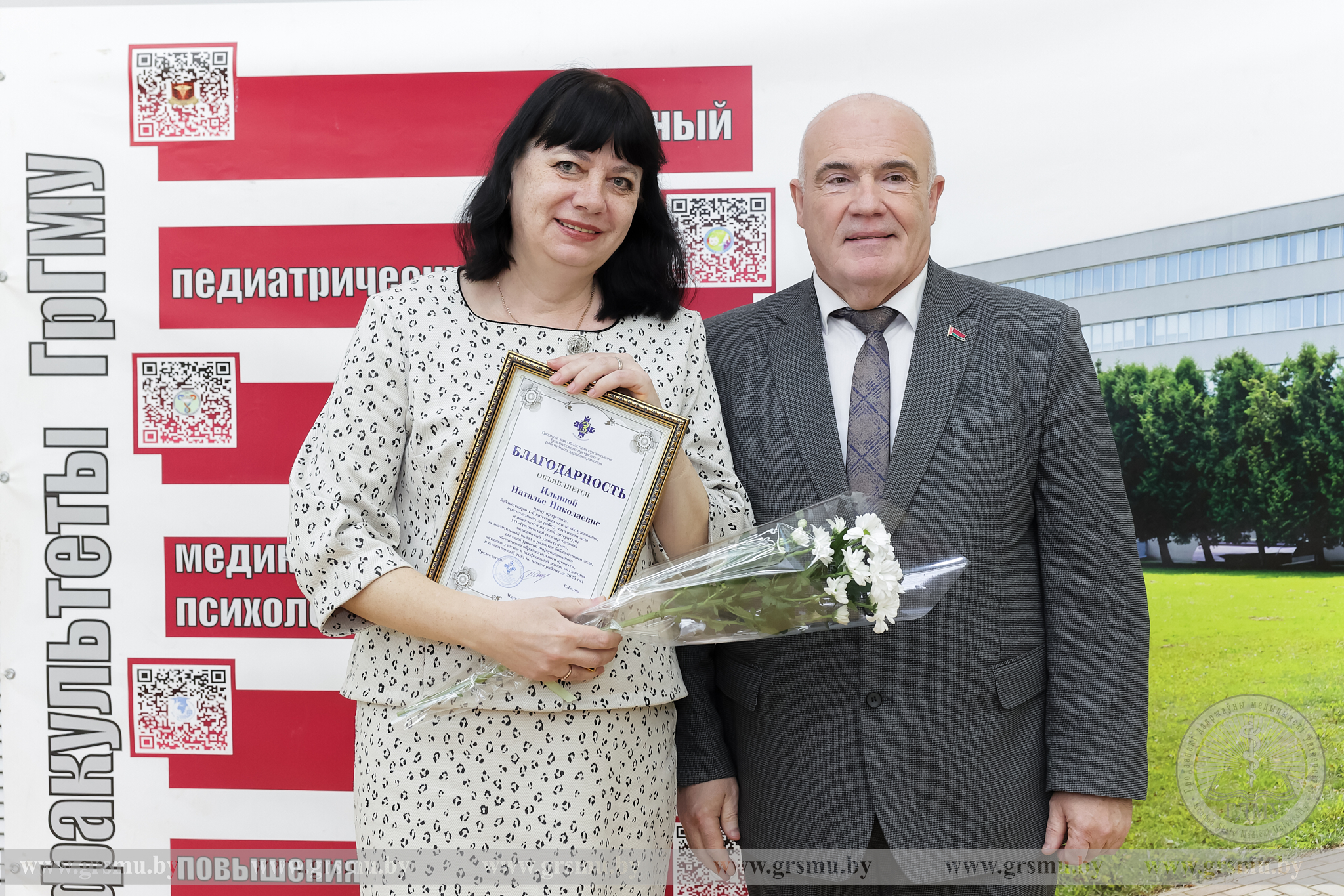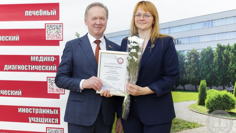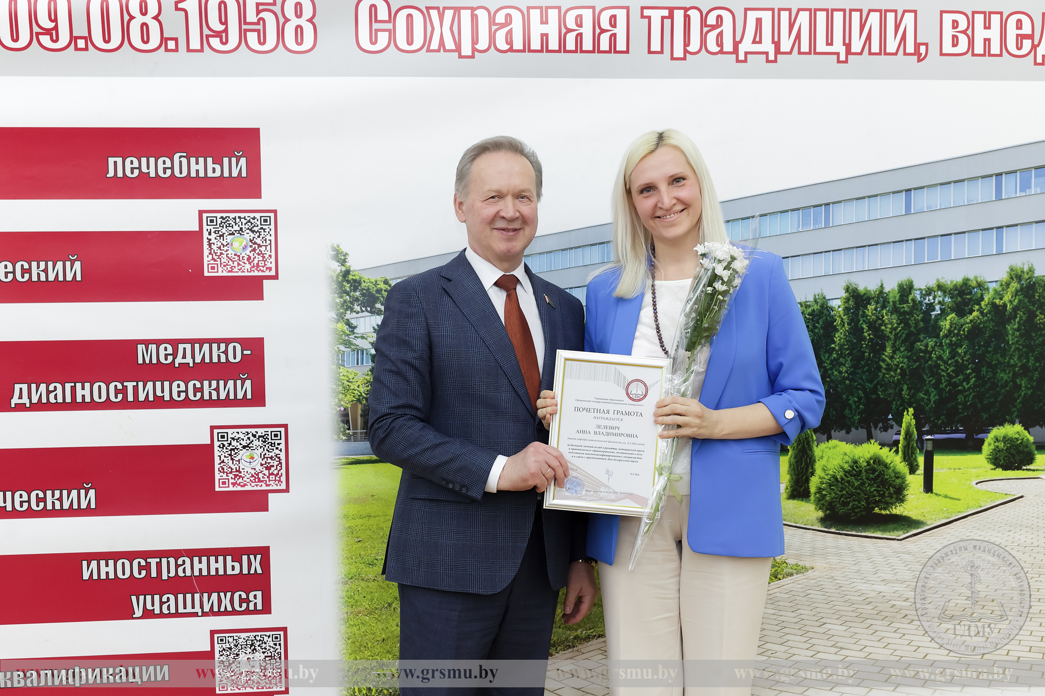 Почетной грамоты главного управления здравоохранения Гродненского областного исполнительного комитета удостоены старший преподаватель 2-й кафедры детских болезней Лилия Николаевна Синица и заведующий кафедрой пропедевтики внутренних болезней Татьяна Павловна Пронько.