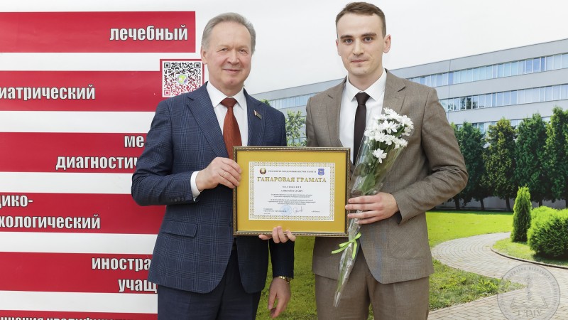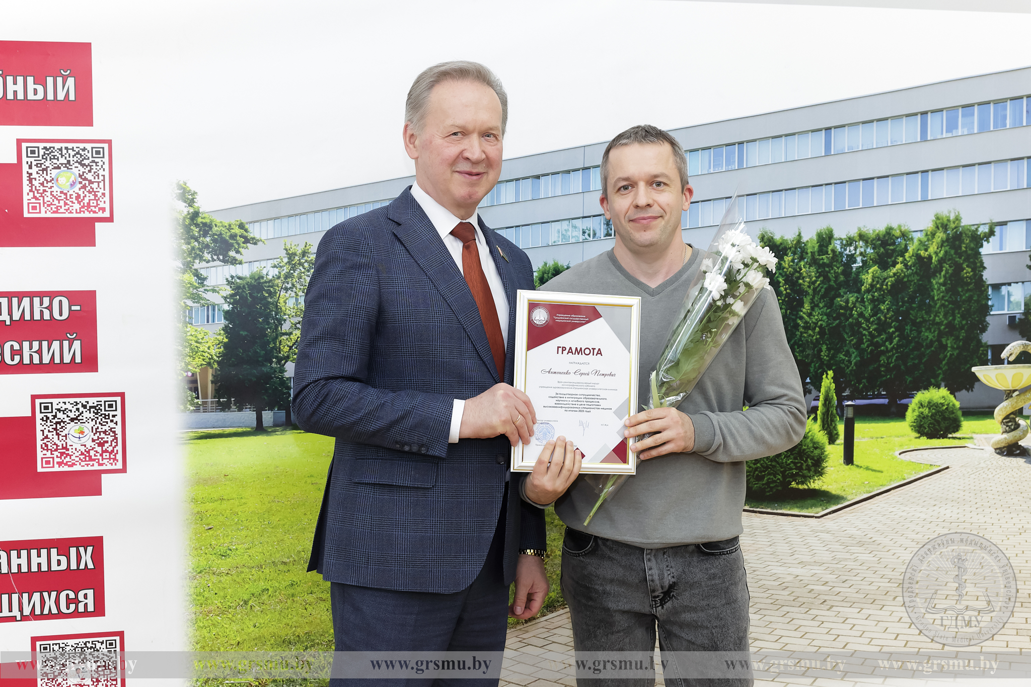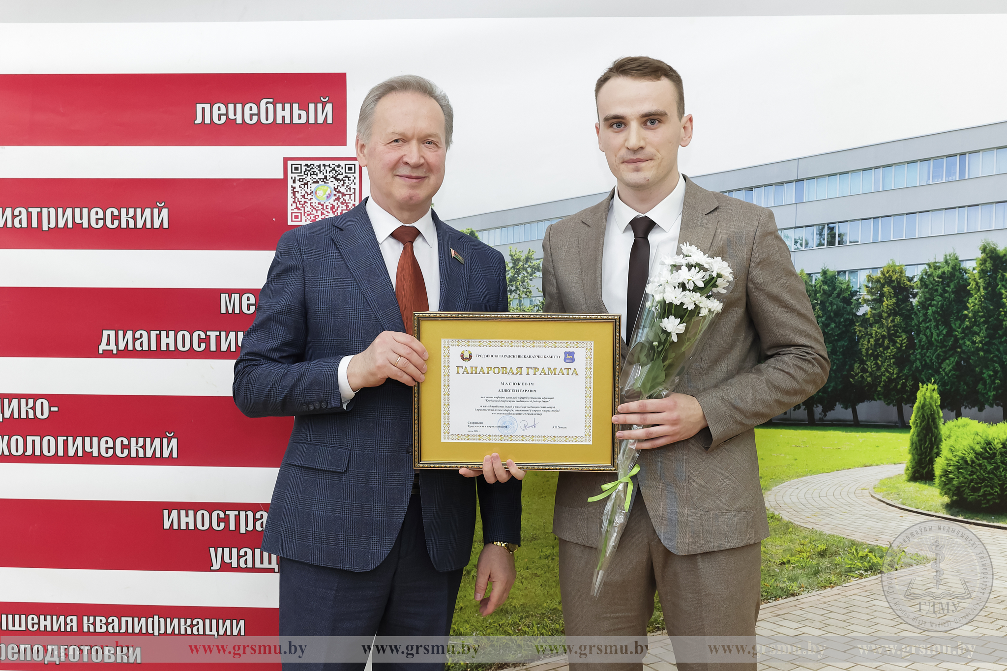 Почетная грамота Гродненского городского исполнительного комитета вручена ассистенту кафедры общей хирургии Алексею Игоревичу Масюкевич.