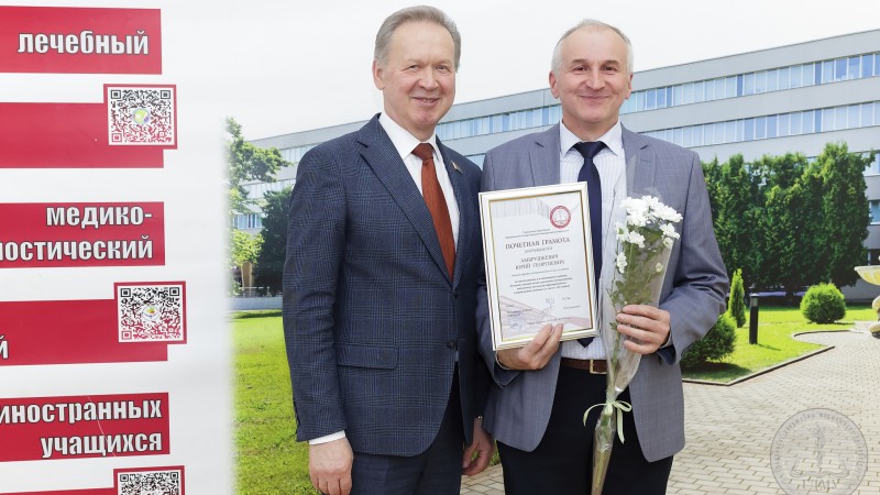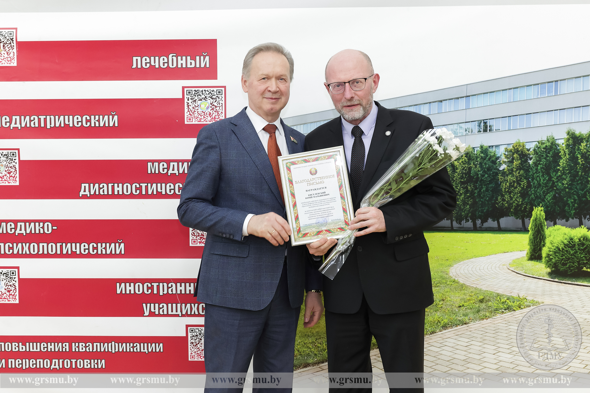 Благодарственное письмо администрации Ленинского района вручено заведующему кафедрой оперативной хирургии и топографической анатомии Юрию Марьяновичу Киселевскому.