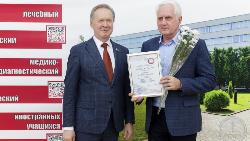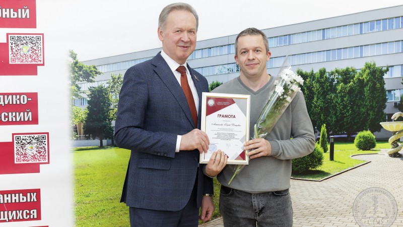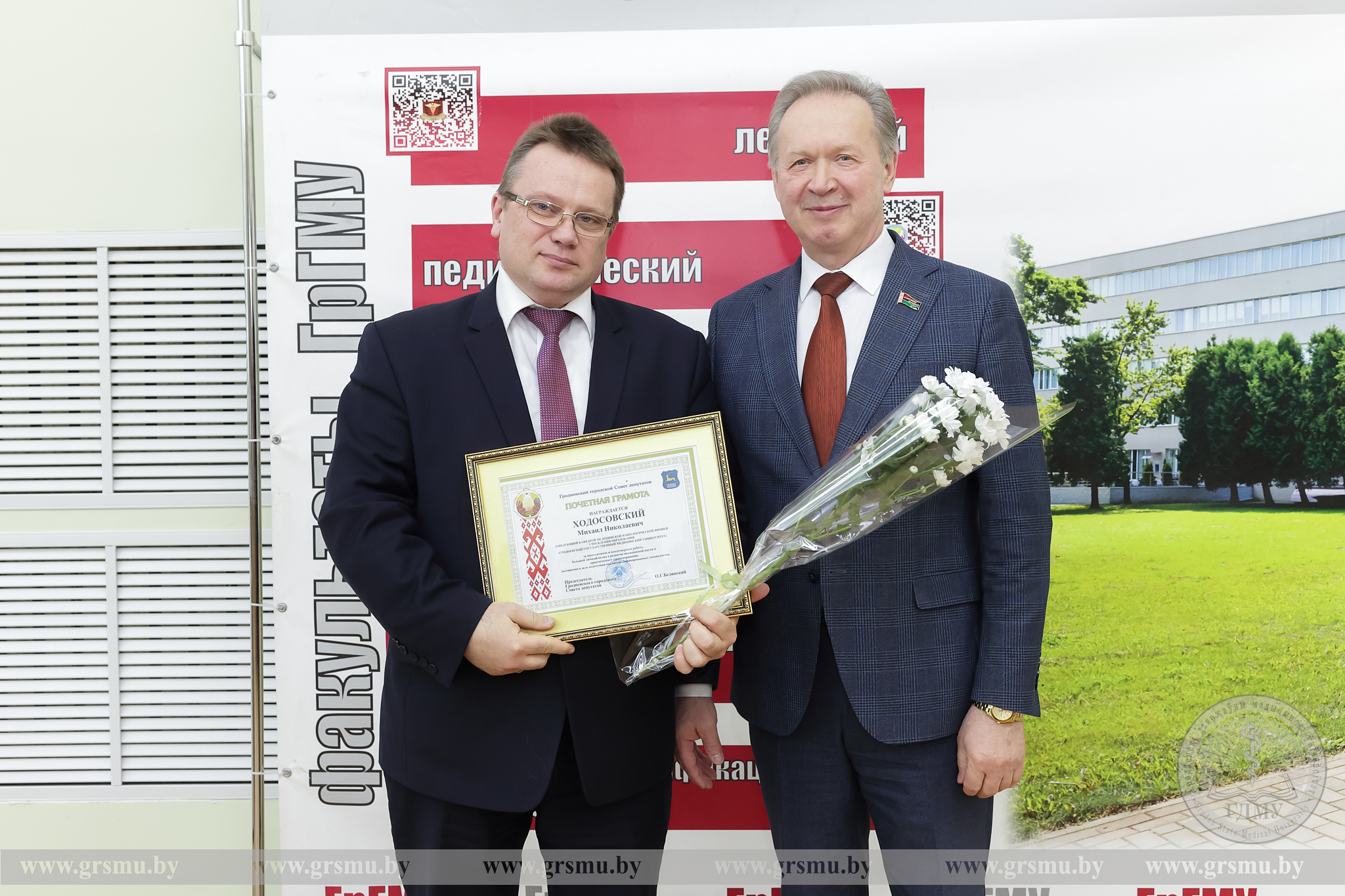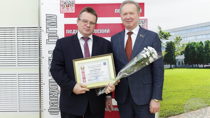Почетная грамота Гродненского городского Совета депутатов вручена заведующему кафедрой медицинской и биологической физики Михаилу Николаевичу Ходосовскому.