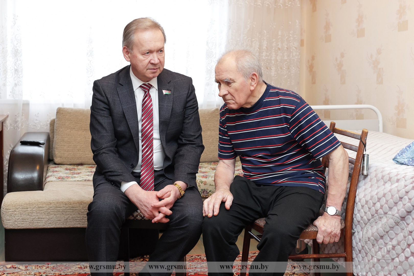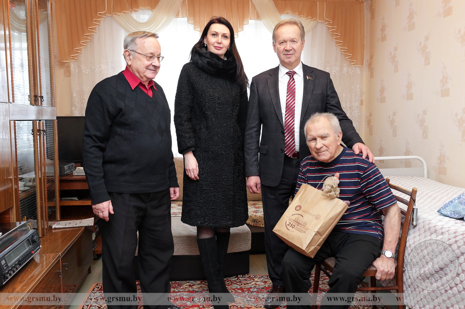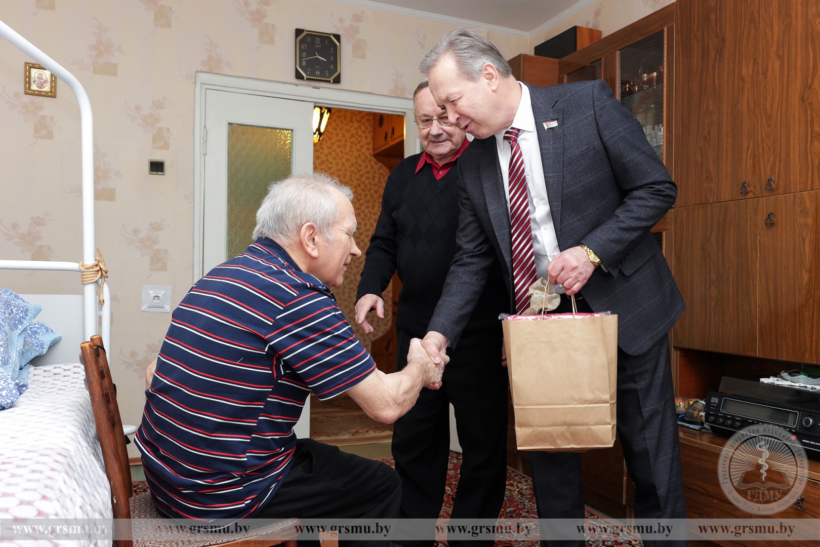 Накануне в рамках акции «От всей души» руководство вуза во главе с ректором Игорем Георгиевичем Жуком, председатель Совета ветеранов ГрГМУ Василий Михайлович Ивашин и представители общественности посетили ветеранов вуза – Анатолия Михайловича Киселя и Александра Васильевича Шевченко.