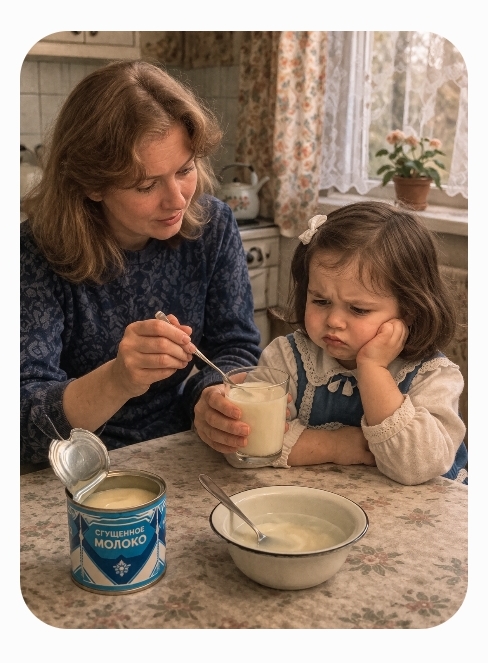 «Вместо него мама давала мне сгущёнку. Я так плакала, – вспоминает Светлана Викторовна. – До сих пор не люблю сгущённое молоко, а люблю «настоящее» молоко».