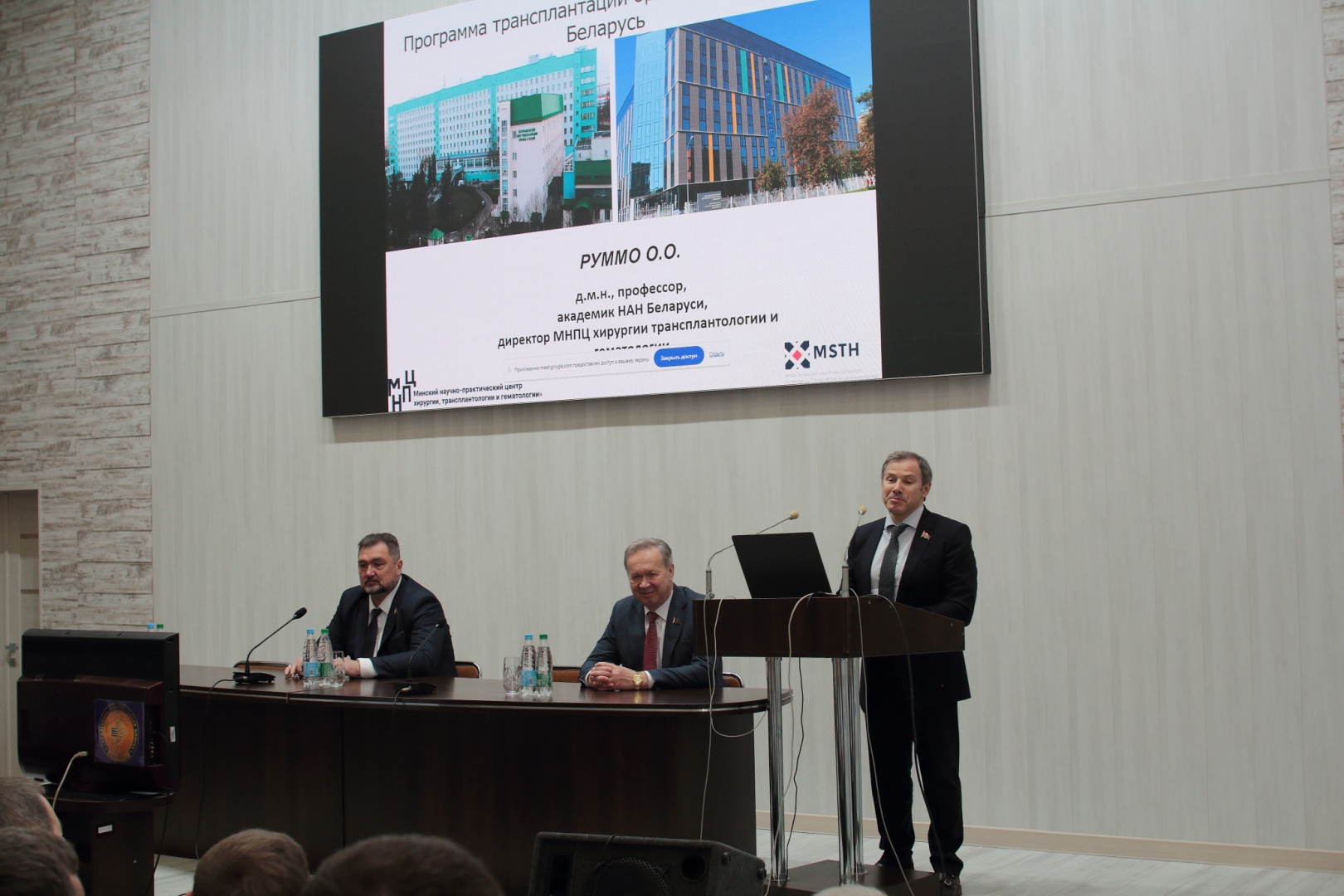 Этапы развития и будущее трансплантации органов и тканей подробно осветил директор центра доктор медицинских наук, профессор, академик НАН Олег Руммо. Отдельные направления огромнейшей сложнейшей работы, которая имеет медицинскую и социальную значимость, конкретизировали в своих выступлениях заместитель директора по хирургической работе профессор Алексей Щерба, заведующий отделом анестезиологии и реанимации профессор Александр Дзядзько. Реализации Концепции развития хирургической службы в республике посвятил свое выступление заведующий отделом планирования, организации и контроля качества хирургической помощи доцент Николай Гвоздь.