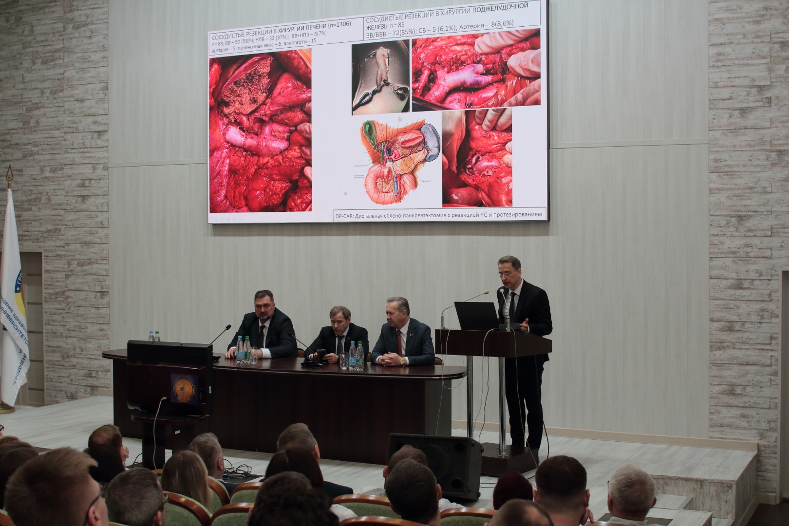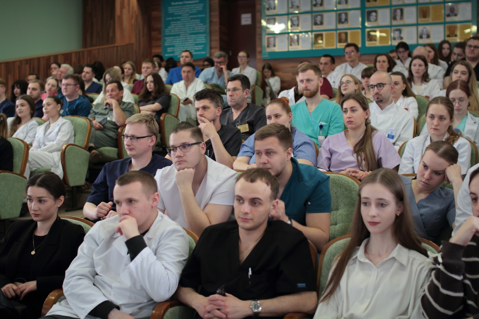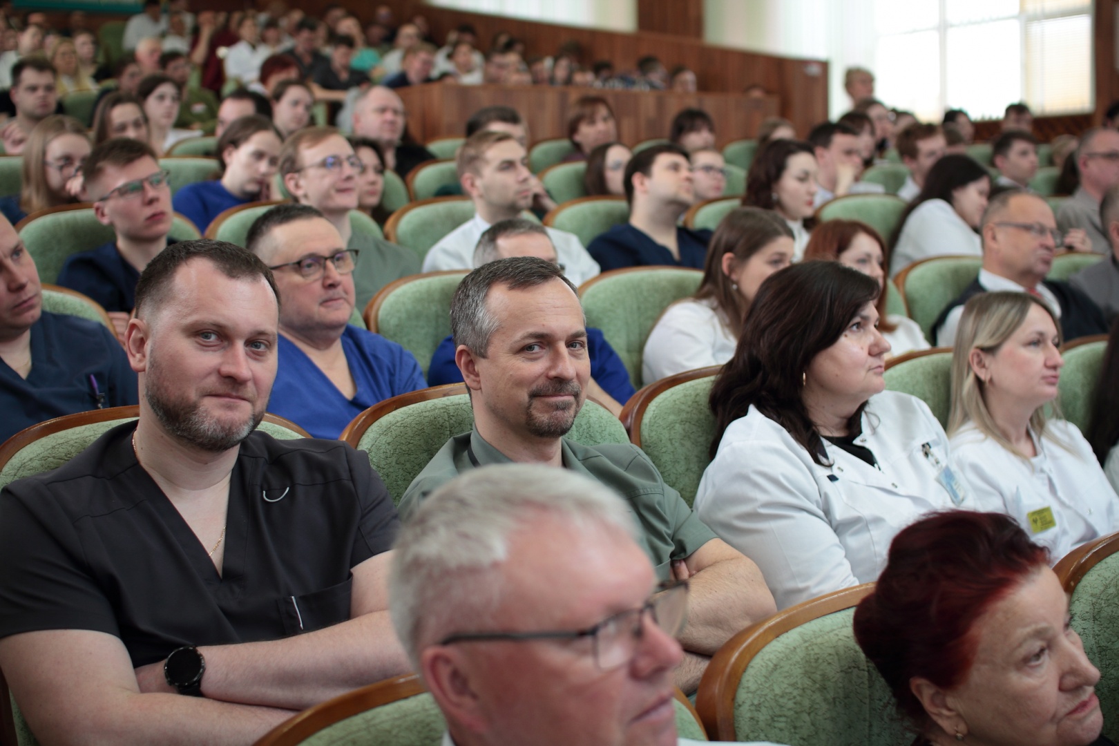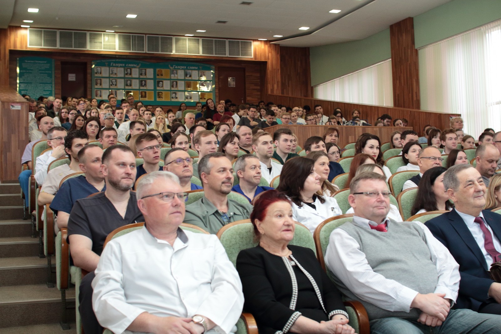 Огромный интерес к обучающему мероприятию, на которое в актовом зале собралась многочисленная аудитория из практических хирургов со всей области и студентов ГрГМУ, был продиктован возможностью услышать корифеев отечественной трансплантологии, узнать о достижениях и перспективах важнейшего направления развития медицины из первых уст.