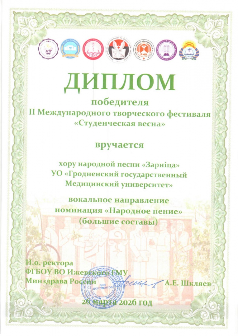 Творческие коллективы ГрГМУ удостоены высших наград на II Международном творческом фестивале «Студенческая весна»