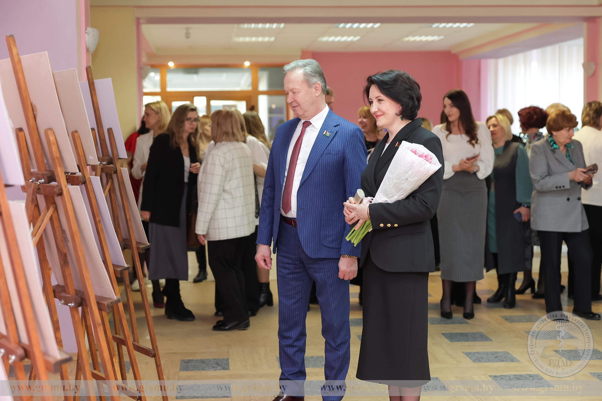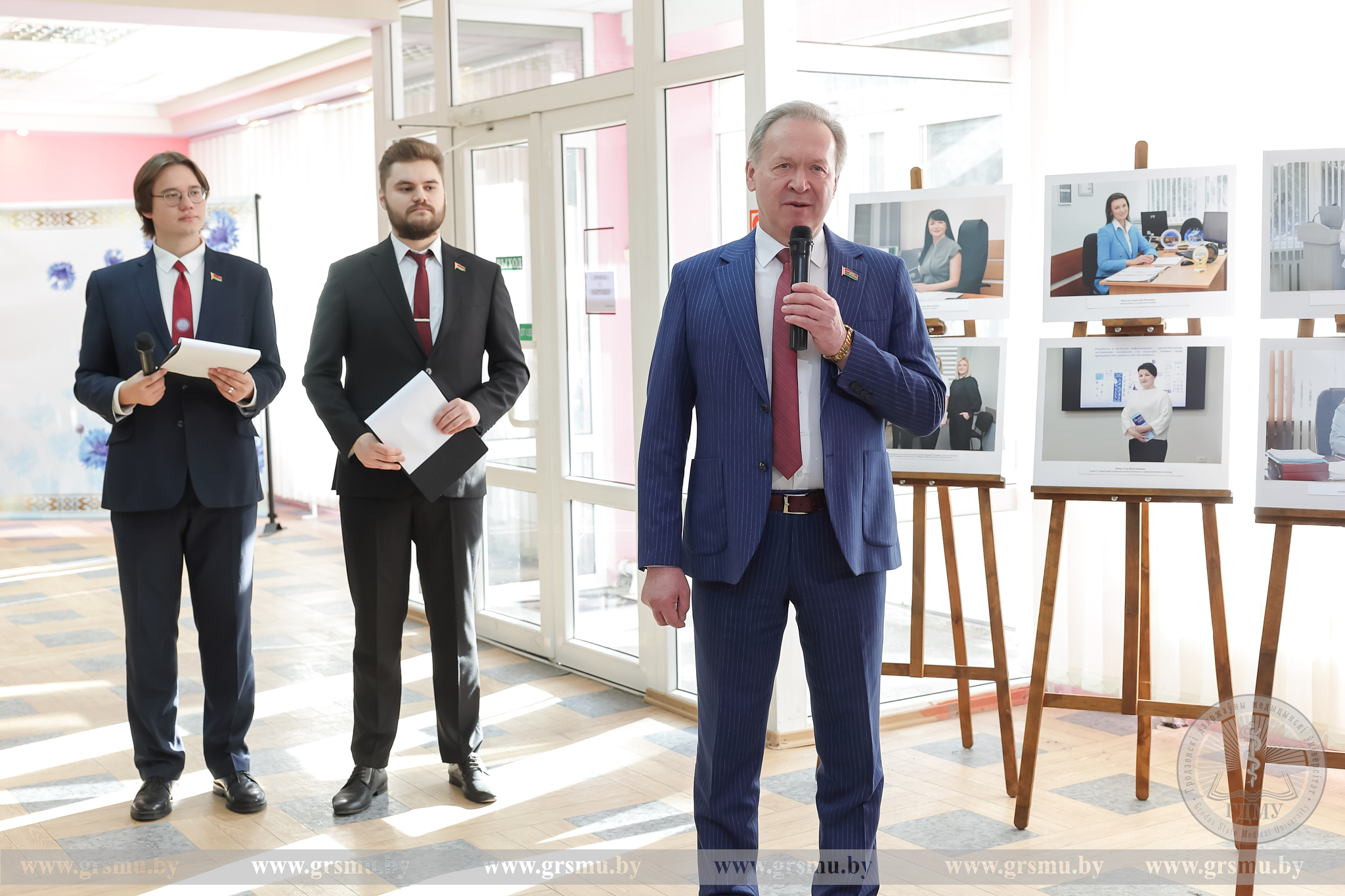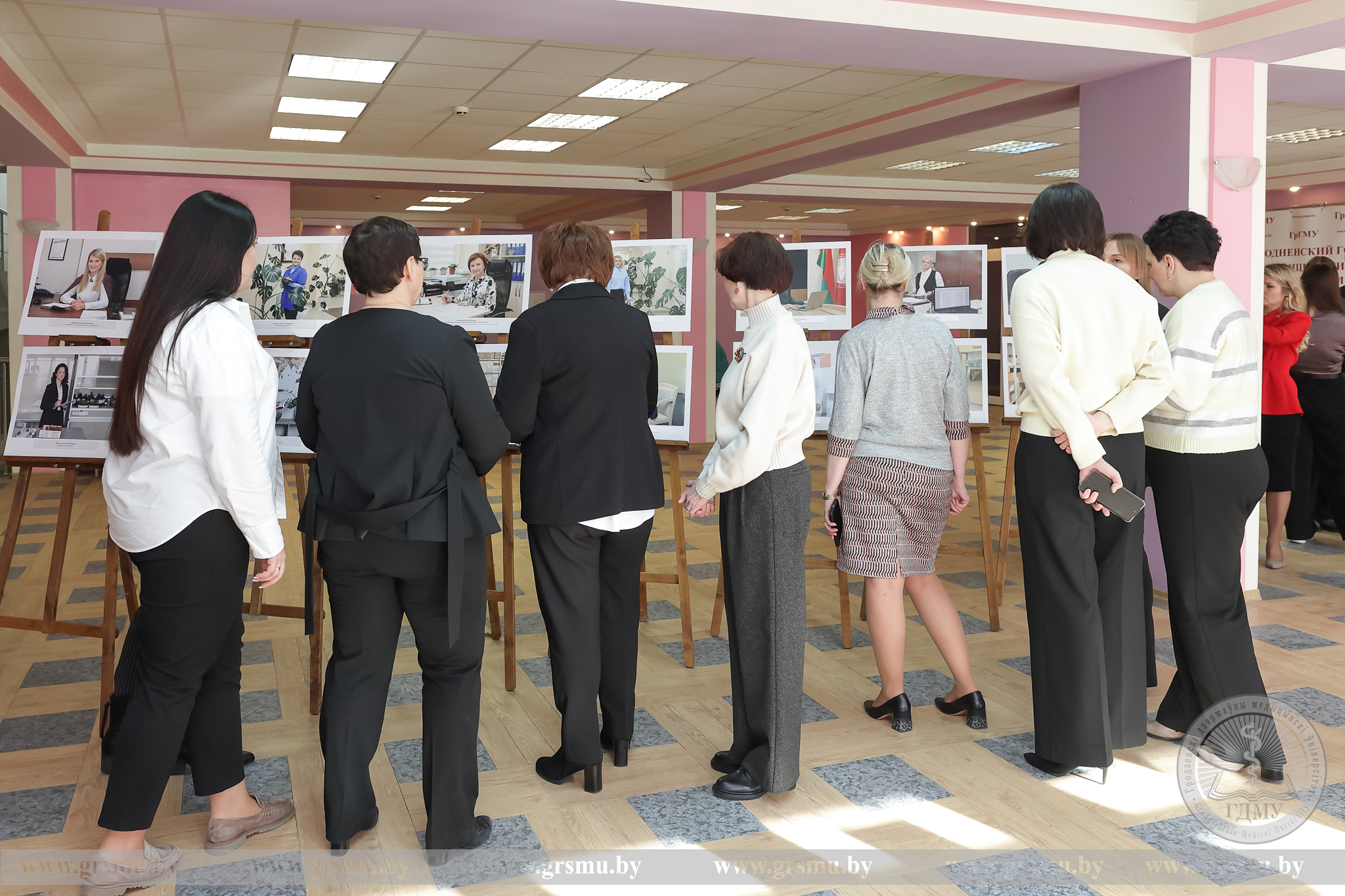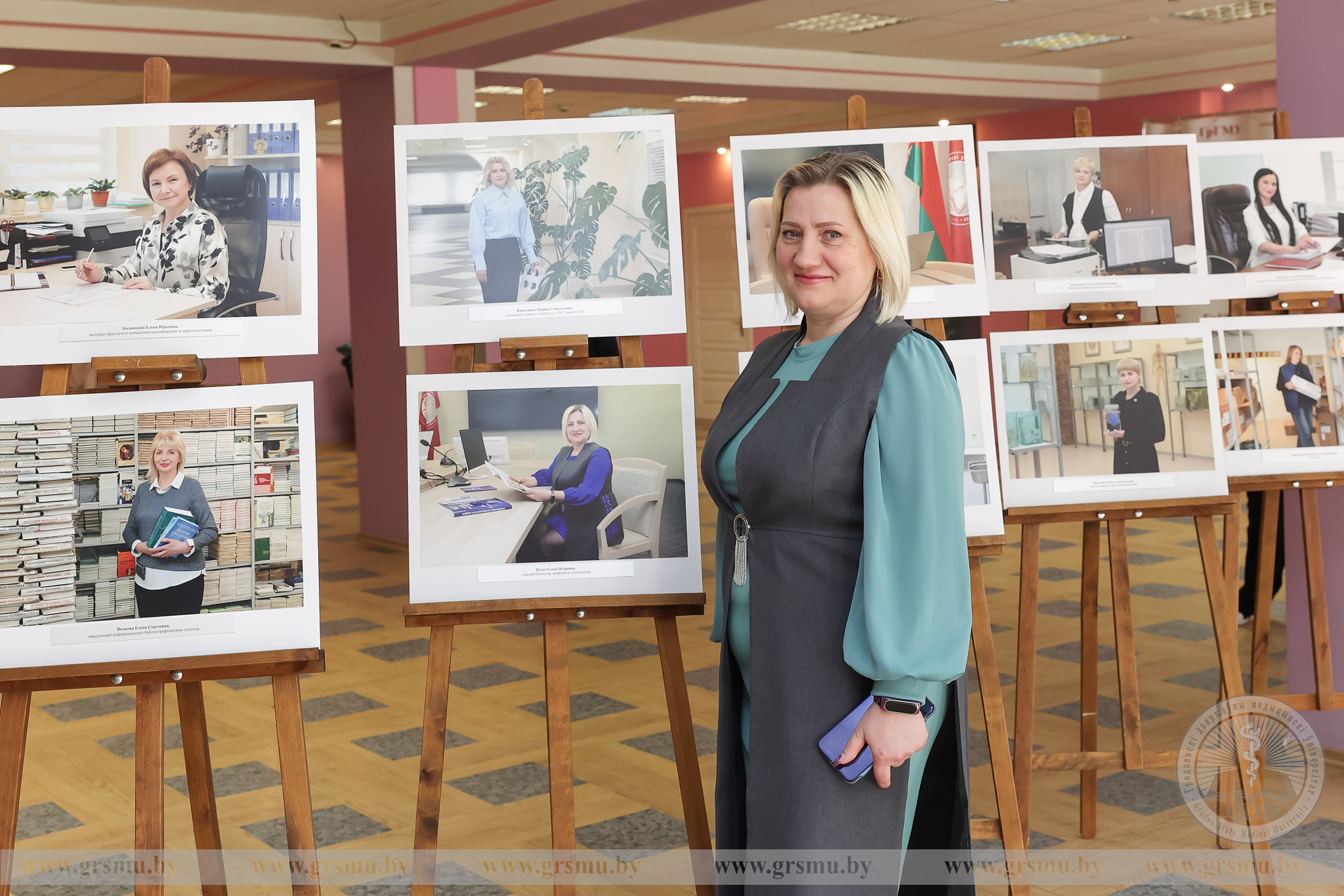 Перед началом концерта состоялось торжественное открытие фотовыставки «Женское лицо ГрГМУ». В Год белорусской женщины мы чествуем тех, кто ежедневно создает атмосферу университета: сотрудниц вуза, специалистов, хранительниц порядка и знаний. Каждая фотография – это мгновение настоящего. Кадры, сделанные без прикрас, показывают главное – искреннюю вовлеченность в дело, профессионализм и ту особую женственность, которая умеет сочетать в себе мягкость и твердость. Организаторами выставки выступили фотограф отдела по связям с общественностью Татьяна Велёнда и заведующий музеем истории ГрГМУ Яна Законникова.