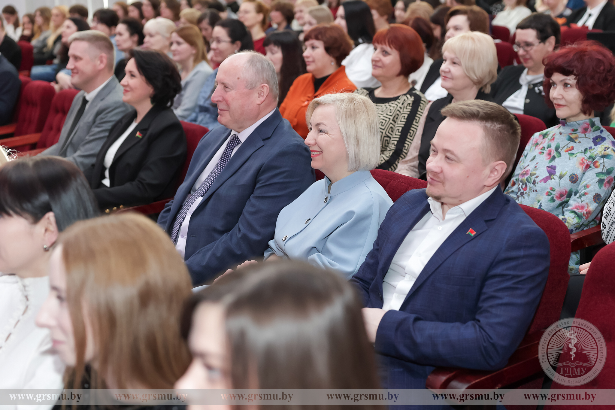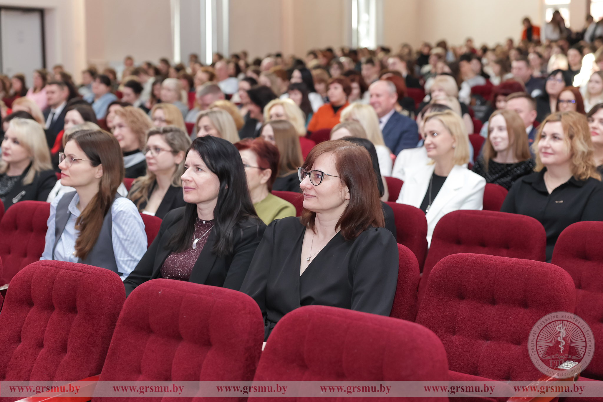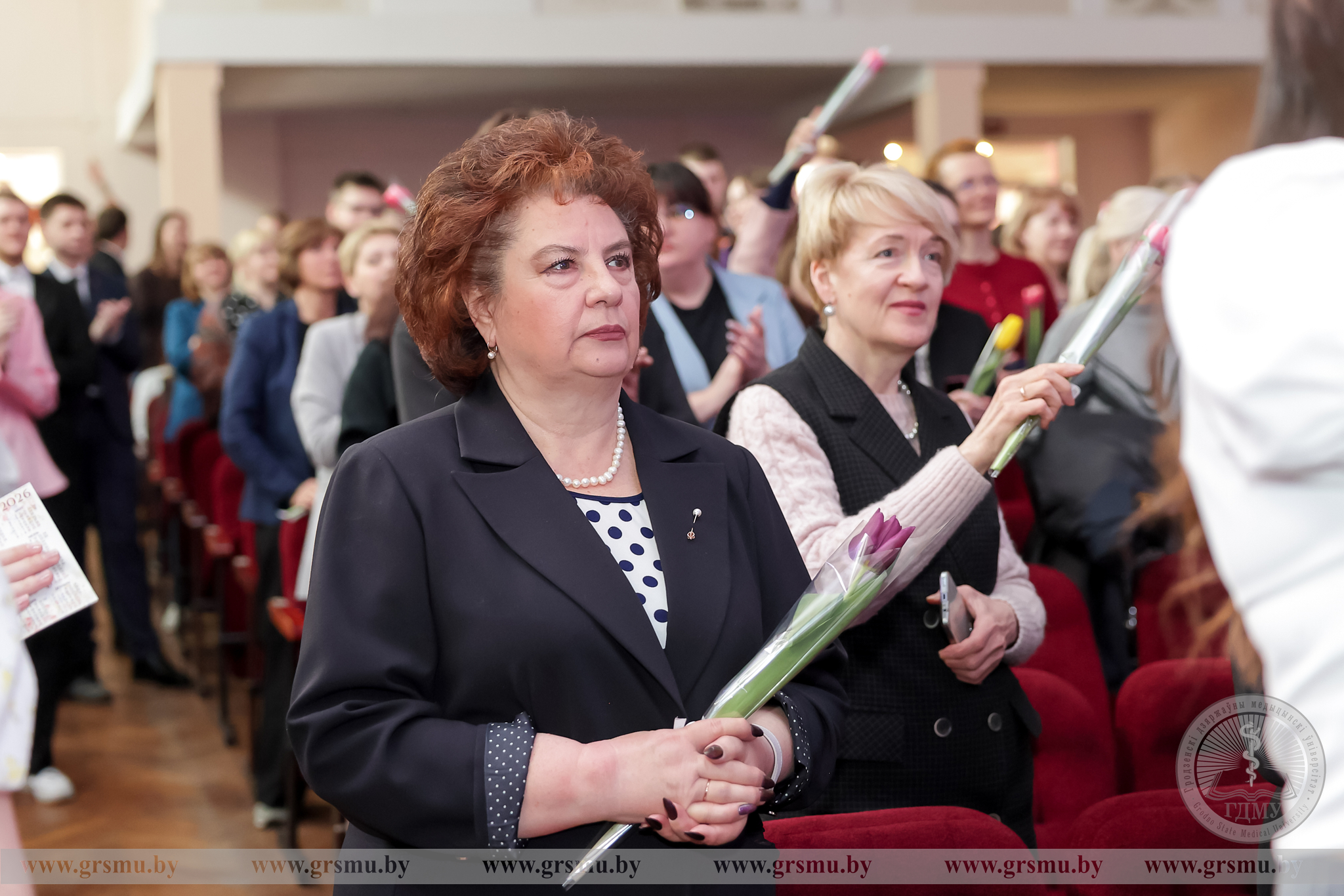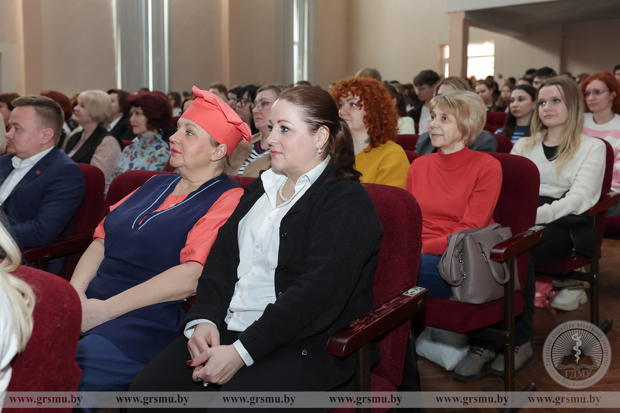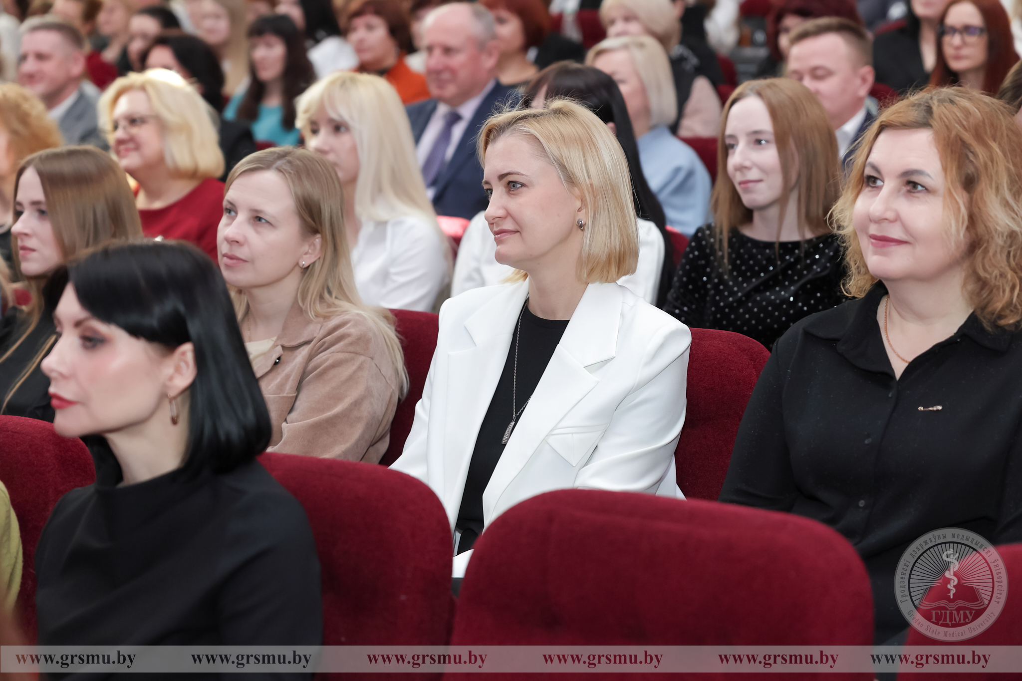 Перед началом концерта состоялось торжественное открытие фотовыставки «Женское лицо ГрГМУ». В Год белорусской женщины мы чествуем тех, кто ежедневно создает атмосферу университета: сотрудниц вуза, специалистов, хранительниц порядка и знаний. Каждая фотография – это мгновение настоящего. Кадры, сделанные без прикрас, показывают главное – искреннюю вовлеченность в дело, профессионализм и ту особую женственность, которая умеет сочетать в себе мягкость и твердость. Организаторами выставки выступили фотограф отдела по связям с общественностью Татьяна Велёнда и заведующий музеем истории ГрГМУ Яна Законникова.