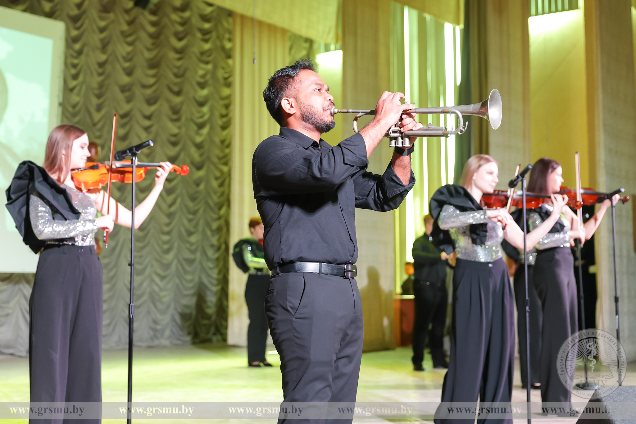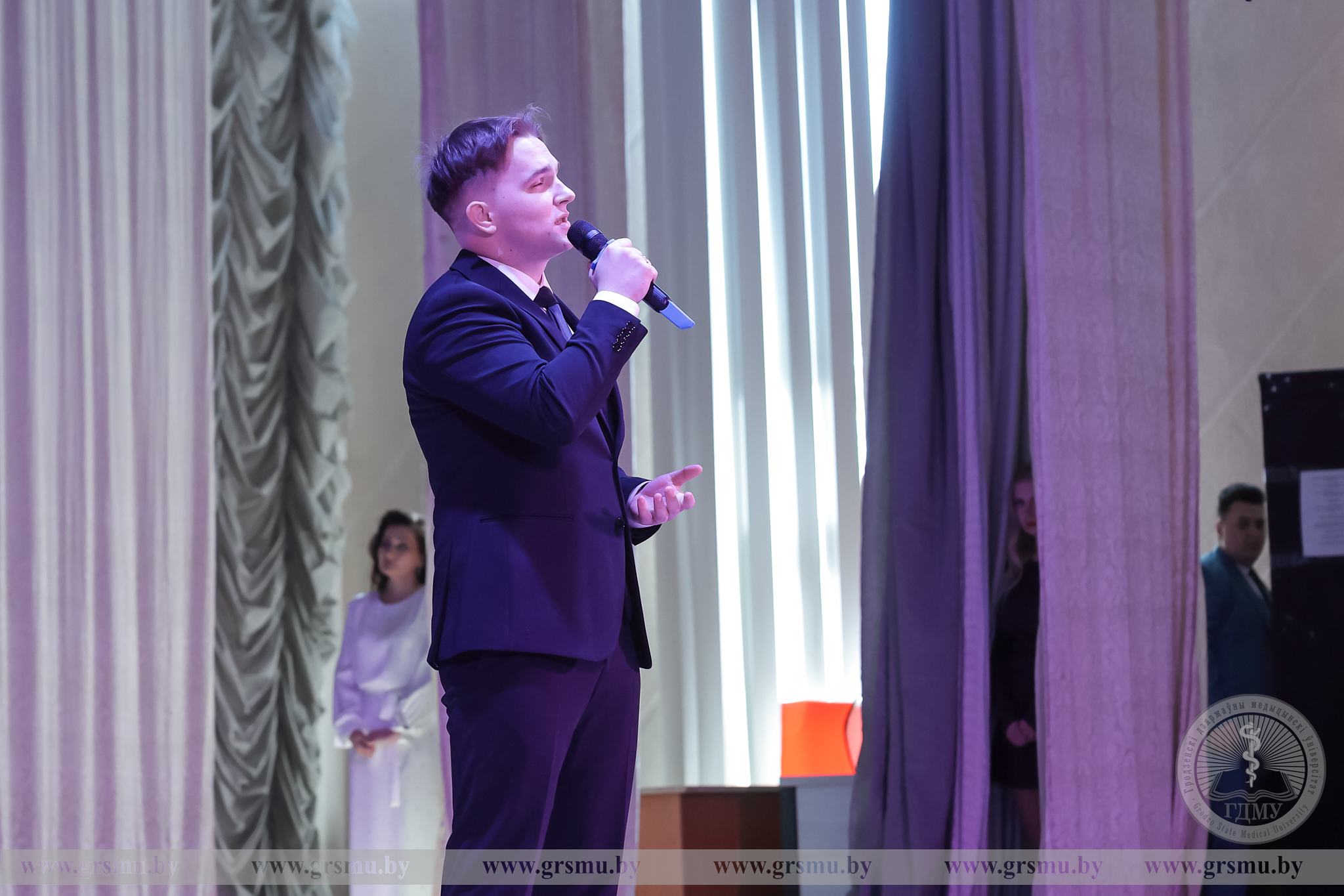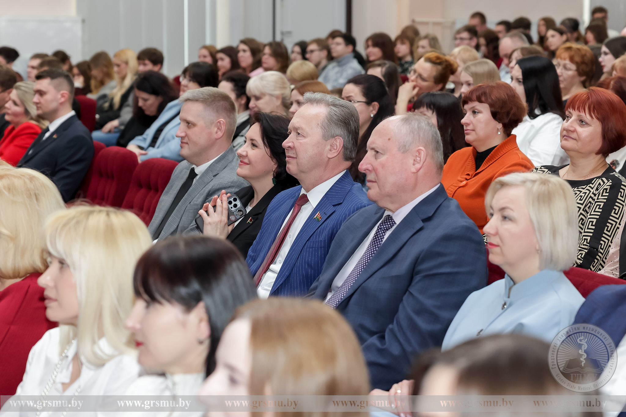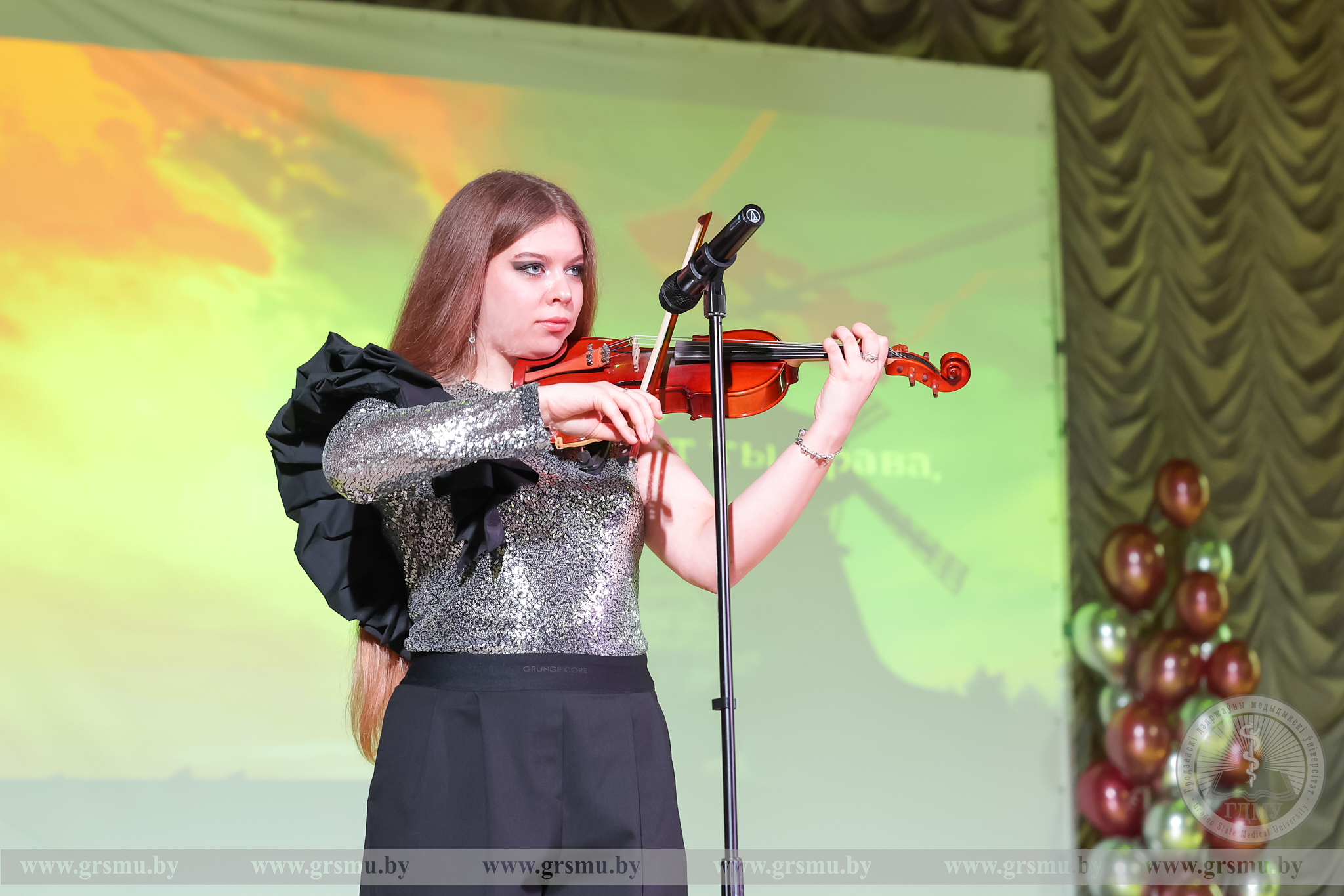 Перед началом концерта состоялось торжественное открытие фотовыставки «Женское лицо ГрГМУ». В Год белорусской женщины мы чествуем тех, кто ежедневно создает атмосферу университета: сотрудниц вуза, специалистов, хранительниц порядка и знаний. Каждая фотография – это мгновение настоящего. Кадры, сделанные без прикрас, показывают главное – искреннюю вовлеченность в дело, профессионализм и ту особую женственность, которая умеет сочетать в себе мягкость и твердость. Организаторами выставки выступили фотограф отдела по связям с общественностью Татьяна Велёнда и заведующий музеем истории ГрГМУ Яна Законникова.