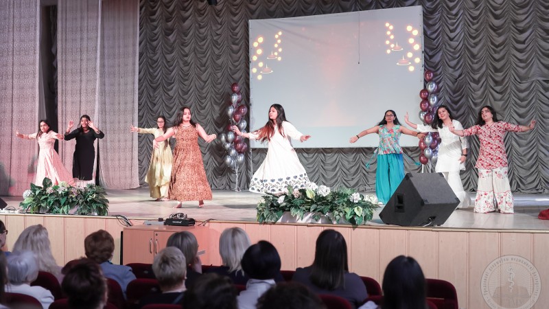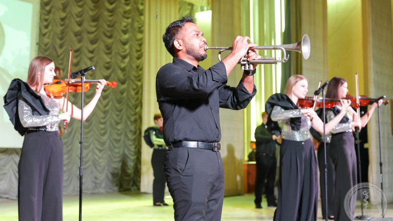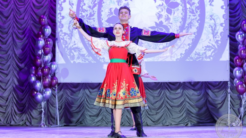 Торжественный концерт начался с ярких номеров, подготовленных творческими коллективами художественной самодеятельности университета.