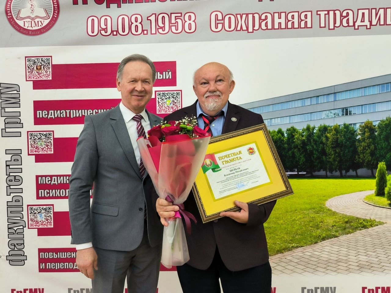 В связи с 70‑летним юбилеем почетная грамота Гродненского областного Совета депутатов вручена заведующему кафедрой микробиологии, вирусологии и иммунологии имени С. И. Гельберга Владимиру Михайловичу Шейбаку.