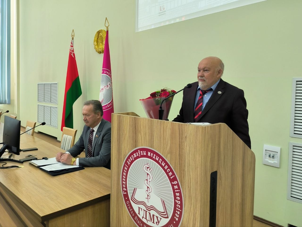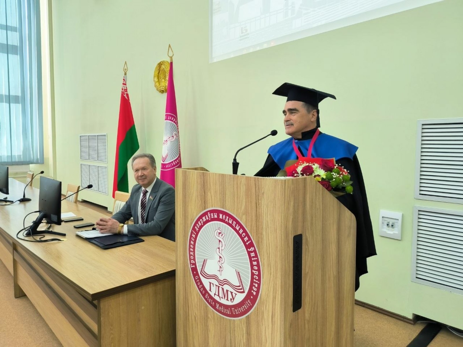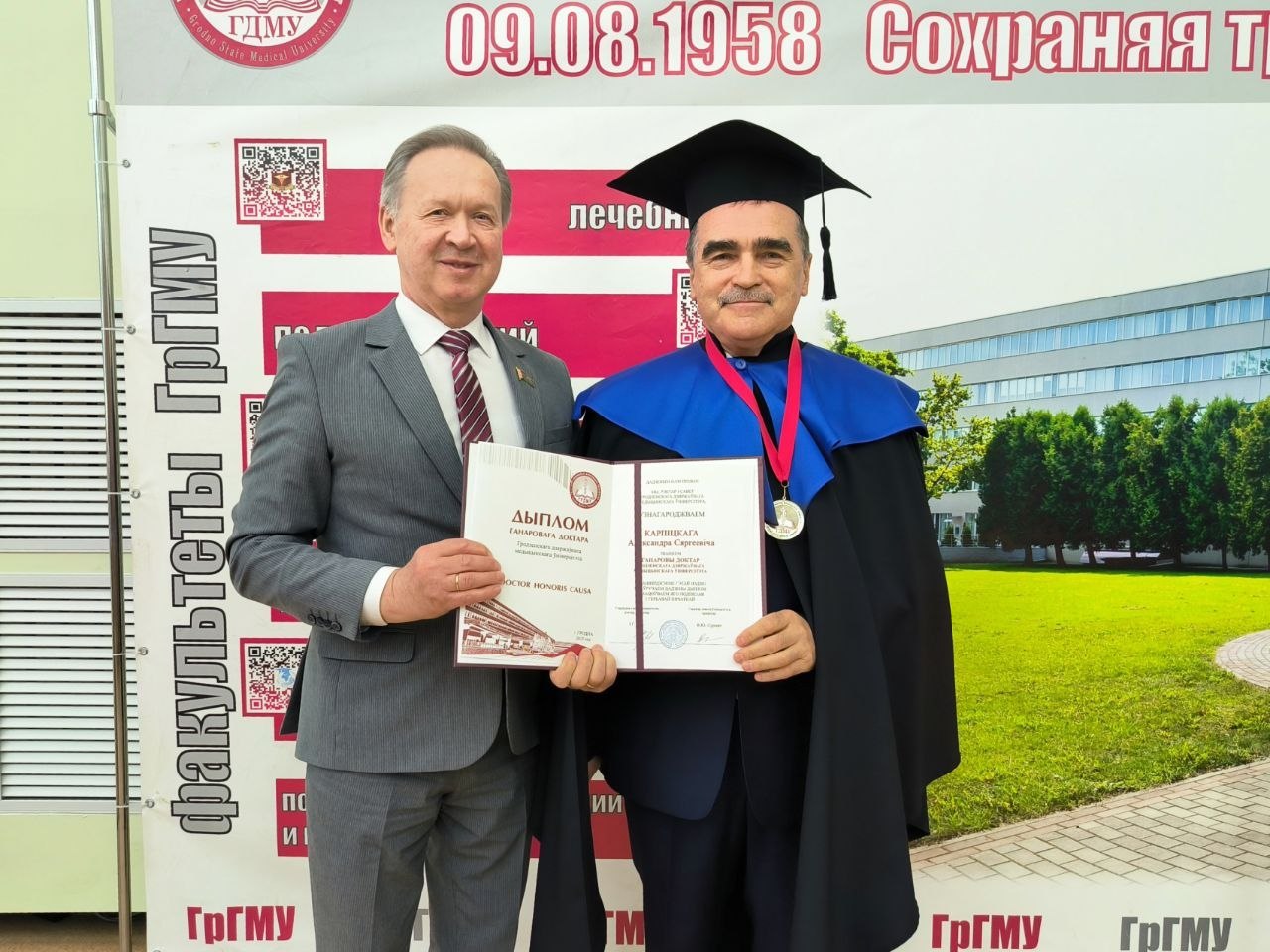 В начале состоялось вручение звания «Почетный доктор» Гродненского государственного медицинского университета главному врачу учреждения здравоохранения «Брестская областная клиническая больница» Александру Сергеевичу Карпицкому.