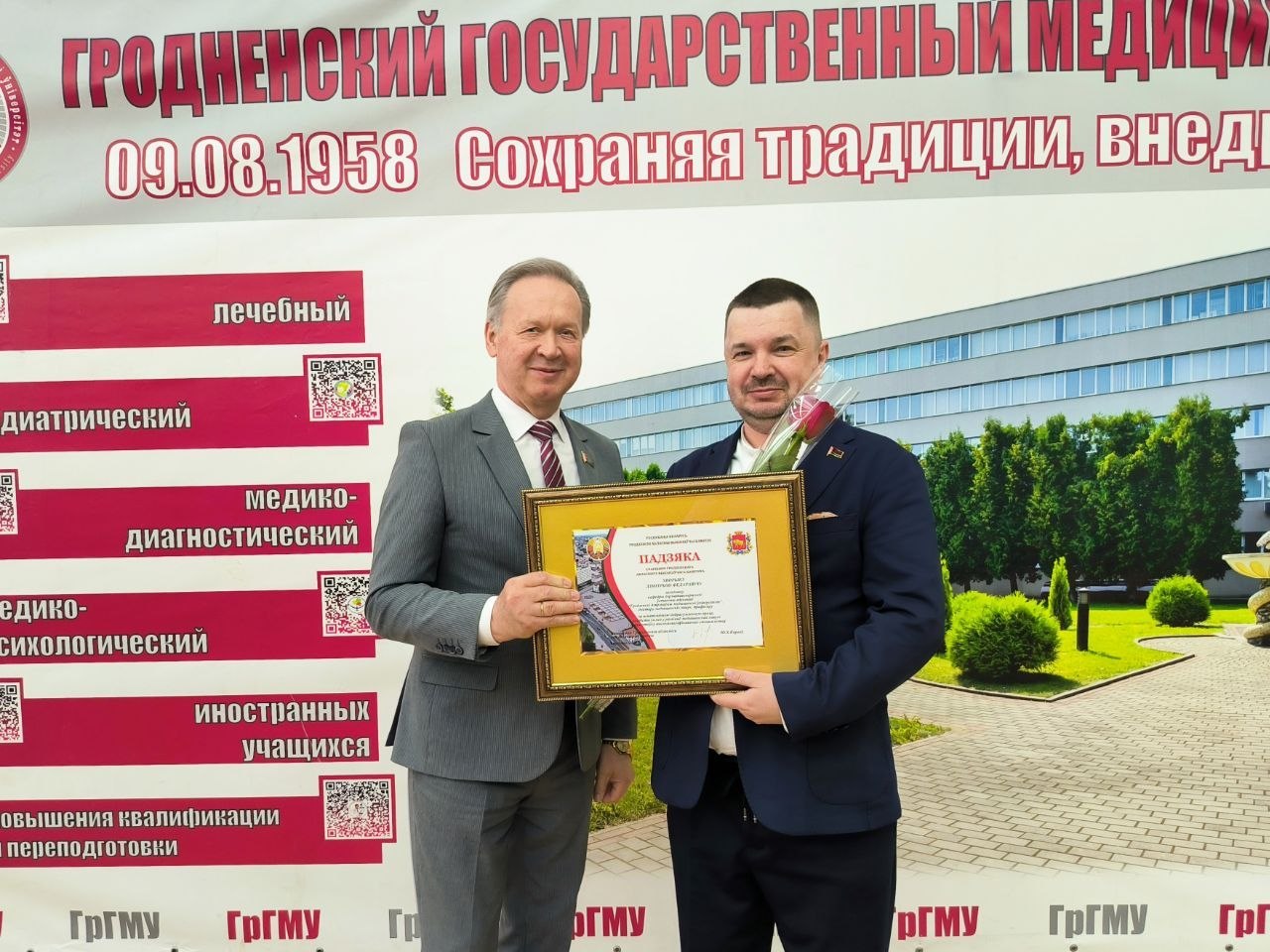 По итогам работы за 2025 год благодарностью Гродненского областного исполнительного комитета награжден заведующий кафедрой дерматовенерологии Дмитрий Федорович Хворик.