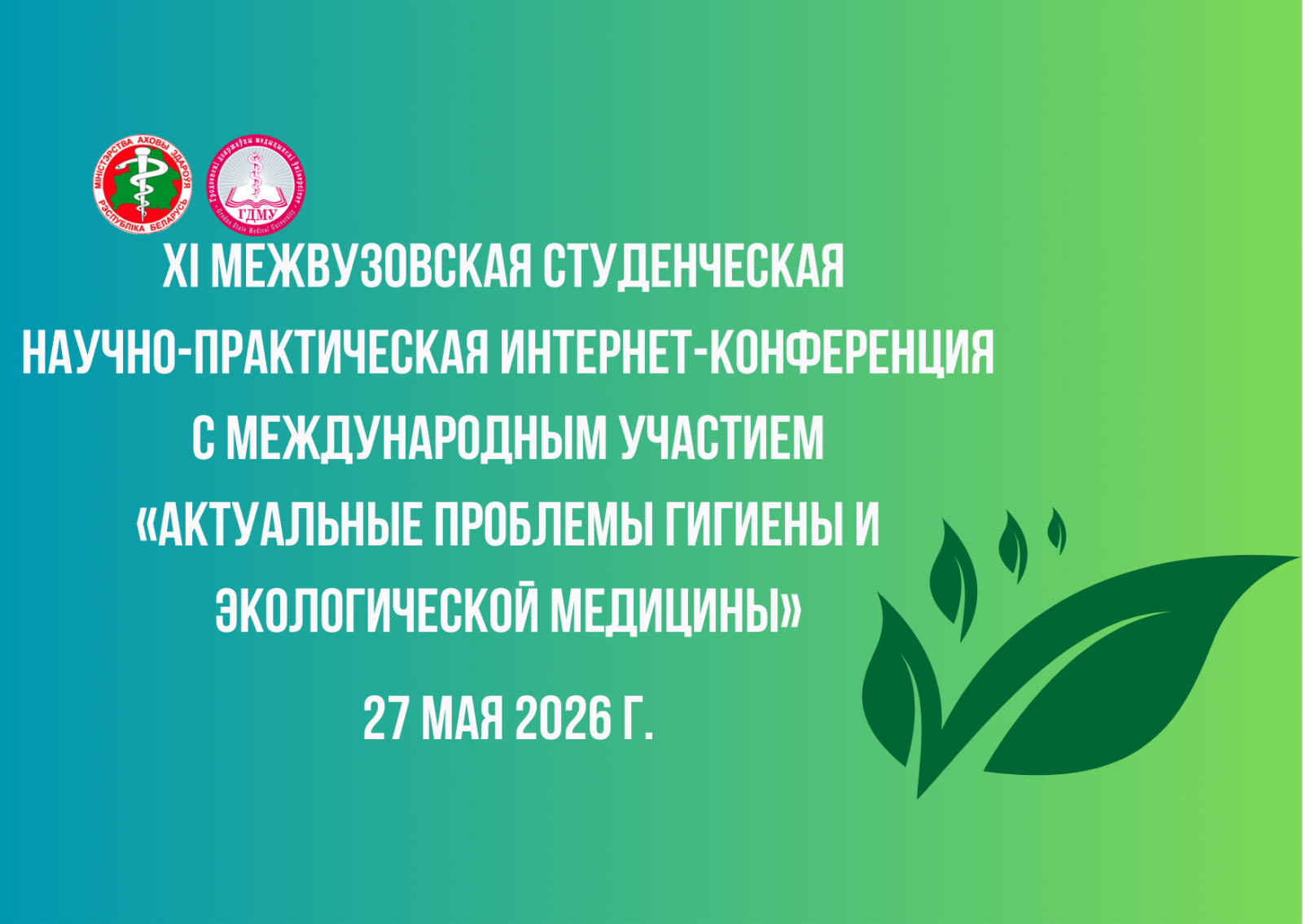 Кафедра гигиены и эпидемиологии учреждение образования «Гродненский государственный медицинский университет» приглашает принять участие в ХI межвузовской студенческой научно-практической интернет-конференции с международным участием «Актуальные проблемы гигиены и экологической медицины», которая состоится 27 мая 2026 года.